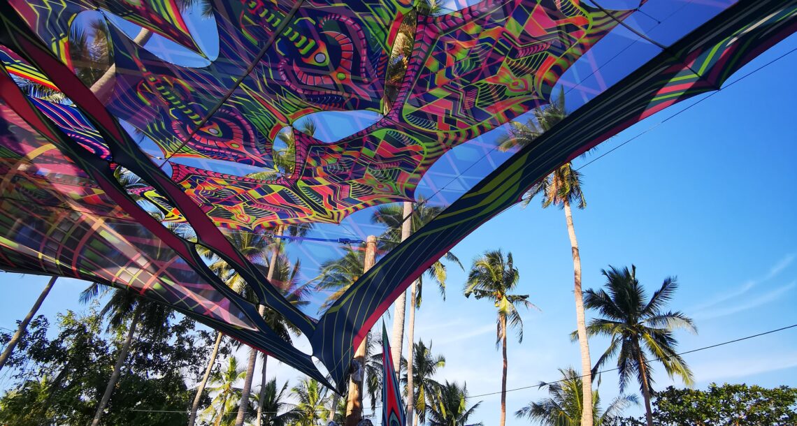 Je la retrouve donc le lendemain ainsi que Sara, une maroco germano irlandaise qu’elle avait rencontrée quelques semaines plus tôt et Nico un italien que Sara a rencontré la veille. Et on y a aussi rencontré notre voisin de campement Fabio (don’t j’ai oublié l’origine exacte mais d’Amérique du Sud). Nous y avons passé une semaine magique de danse, de plage, de chill, de rigolades, de partage d’expérience de voyage et de bonnes bouffes au petit resto au bout de la plage. Ce restaurant familial était notre petit havre de paix loin des basses chaque soir pour le dîner. Le site du festival est très beau avec des palmiers, la plage turquoise et la scène psychédélique. La plage était jonchée de détritus et Je pense qu’au moins la moitié des festivaliers, un moment où un autre, à pris un sac poubelle pour nettoyer un bout de la plage. À la fin de la semaine elle était presque nickel! Puis la grande marée de la pleine Lune à tout recouvert de plastique à nouveau… On a bien déconné avec la Planète… Pour ne pas finir sur une note négative, cette semaine était vraiment très chouette et m’a donné plein d’énergie pour la suite! Et dormir en tente sans climatisation pendant une semaine m’a permis de réellement m’habituer à la chaleur! Maintenant en route pour Bangkok où je rejoins ma sœur Sandra, mon beau-frère Loran et mon neveu Barnabé pour quelques jours!