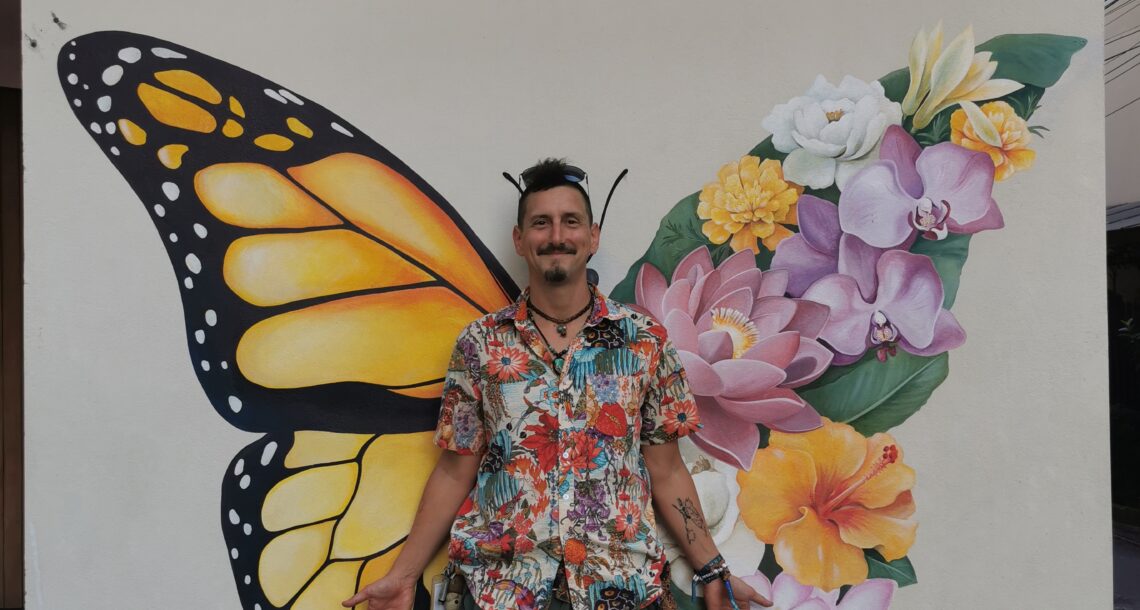 Après avoir hésité un long moment, je suis RAVI d’être resté un peu plus longtemps en Thaïlande pour assister à ce festival merveilleux!!!! Festival organisé depuis 2010 par des hippies japonais sur un site vraiment magnifique dans les montagnes de Chiang Dao. Avec Arnaud et Laurence nous rencontrons Elisa et Mattheo, un couple de jeunes français trop mignons avec qui nous installons un abris en feuilles de bananes pour nous protéger du soleil et avec qui nous passons les cinq premiers jours du festival. Ces premiers jours nous profitons à fond des concerts le soir (que de la musique instrumentale, pas d’électro…), des ateliers en tout genre (thérapie sonore, yoga méditation, tantra, danse…) et j’organise des ateliers “Créez votre propre bijou” qui fonctionnent super bien. Et je refait du jonglage de feu pour la première fois depuis plus de quinze ans!!!! Le cinquième jour c’est pause musicale et c’est l’occasion idéale pour nous prélasser au bord de la rivière à l’ombre des arbres (tous plus beaux les uns que les autres!), pour nous baigner dans les sources chaudes et pour nous reposer un peu. Et les cinq derniers jours se passent sans embûche mais avec une énergie plus calme. Après avoir discuté avec des DJ en dehors du festival, Arnaud nous fait un set électro d’une heure et demi sur lequel je me régale (ça m’a un peu manqué de taper du pied…). Et c’est là que nous rencontrons Orlane et Angie, un couple de parisiennes adorables avec qui le courant passe tout de suite! C’est grâce à elles que nous rencontrons ensuite Minh, une nana en or, son fils Alex et sa chèrie Bella. Minh a 75 ans mais elle en paraît à peine 55, elle a une pêche d’enfer et nous raconte sa vie pleine de rebondissements et d’aventure, une vraie inspiration pour le futur!!!!! Si ce festival durait un mois je pense que je n’en bougerais pas!!!!