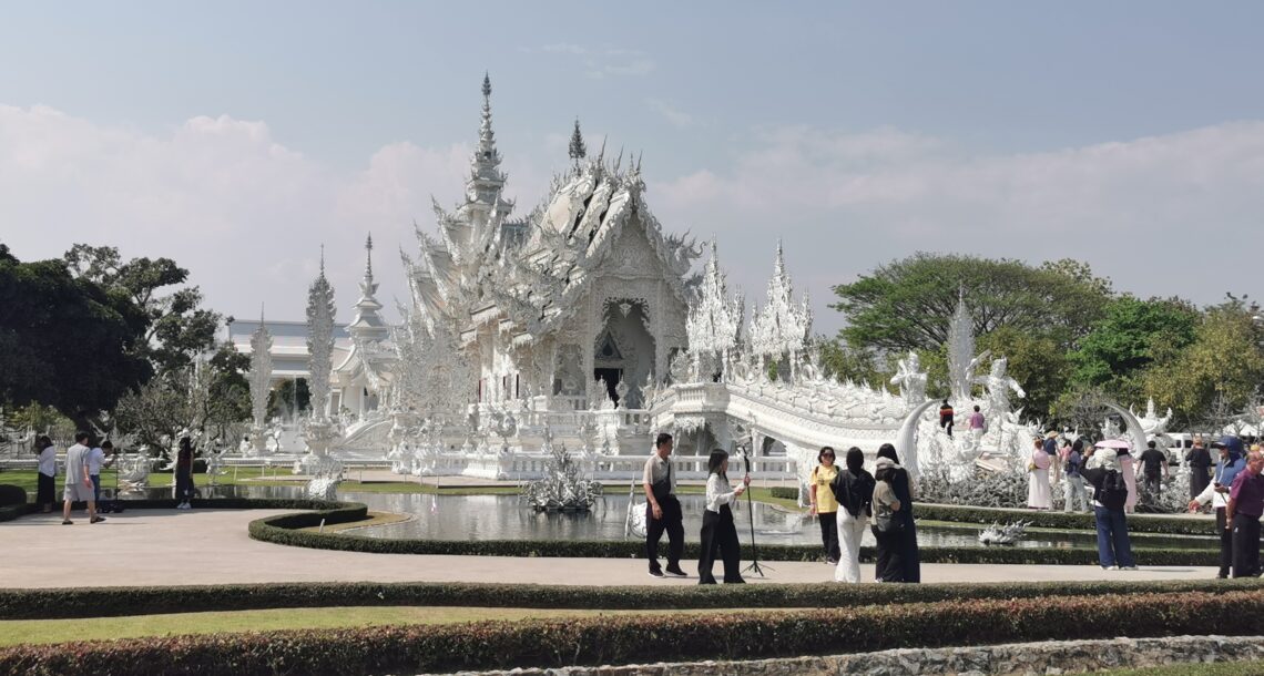 En route pour la frontière Laossienne au Nord de la Thaïlande, nous faisons un arrêt à Chiang Rai pour visiter le Temple Blanc (Wat Rong Khun). Très différent des autres et très joli mais ça fait un peu Disneyland… Ensuite nous passons la frontière et dormons à Huai Xai avant de prendre le SlowBoat le lendemain.
