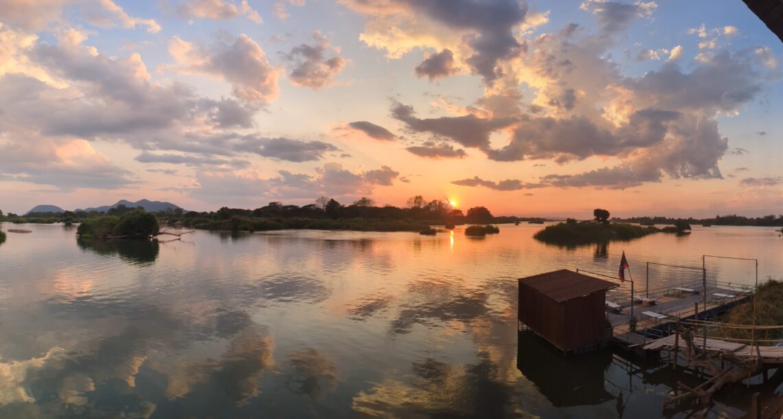 Dernière étape au Laos: les 4000 îles et en particulier l’île de Dondet. J’y ai bien trop chaud et me remets d’une intoxication alimentaire mais j’arrive quand même à visiter l’île à vélo avec ses chutes d’eau assez impressionnantes même pour la saison sèche et ses beaux couchers de soleil! Ensuite je passe la frontière cambodgienne et prends un bus de nuit pour Angkor Wat!!!!!