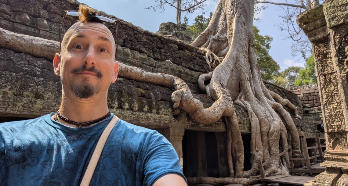 Me voici au Cambodge pour visiter ce site incroyable que je rêve de voir depuis fort longtemps! Et je ne suis pas déçu, c’est encore plus incroyable que je ne le pensais! Il y a des temples PARTOUT, certains en bon état et d’autres de pures ruines, certains recouverts d’arbres et d’autres abritant des singes, certains remplis de touristes et d’autres totalement oubliés des foules… C’est beeeeaaaauuuuuu! Mais il fait tellement chaaaaaaauuuuuuuuud!!!!! Je commence à vraiment souffrir de la chaleur, je passe mes journées à l’ombre, sur mon scooter ( il y a de l’air tant que je roule) et au cinema climatisé… 2 ou 3 heures de visite de temples par jour avant de trop en baver. Et la nuit c’est pas beaucoup mieux et en plus les moustiques s’y mettent… Donc c’est merveilleux comme endroit mais j’ai tellement hâte de retrouver la fraîcheur de l’Himalaya au Nepal!!!!