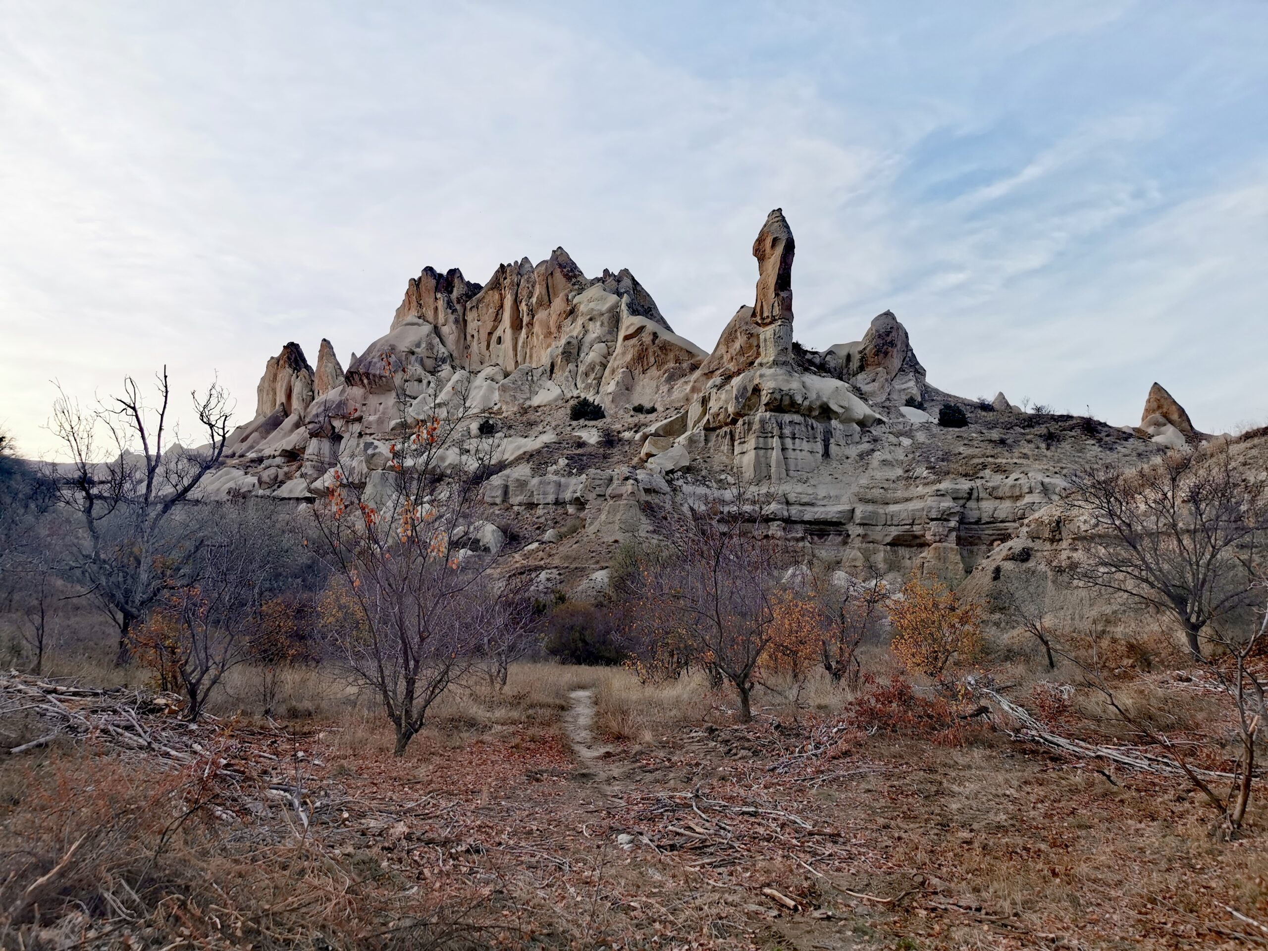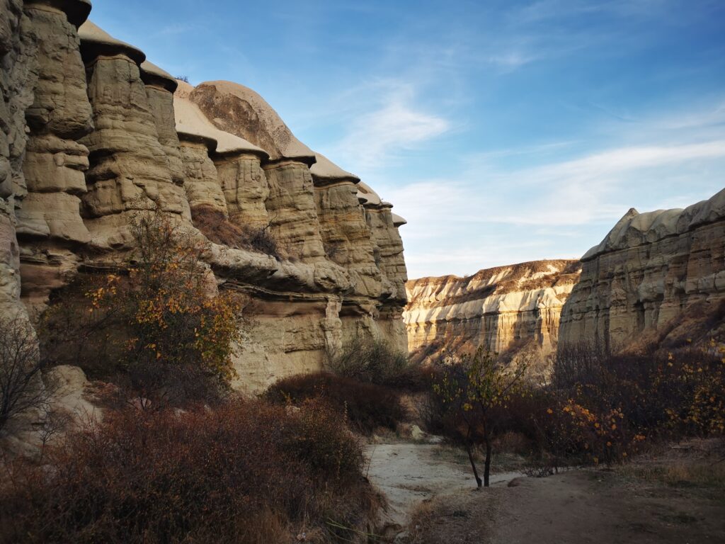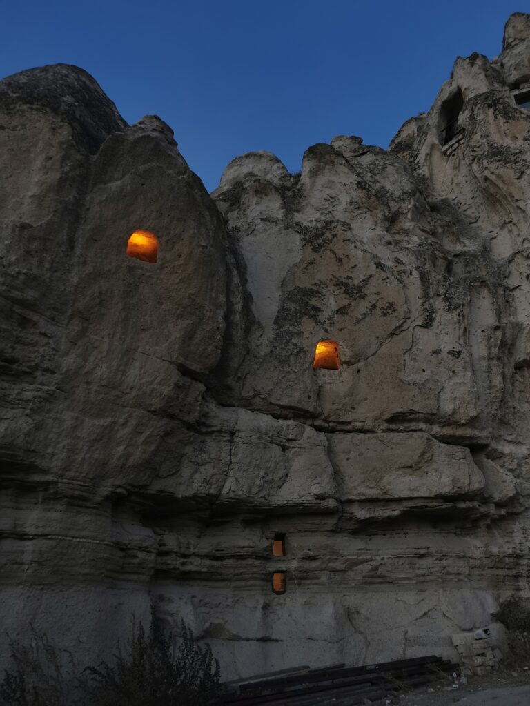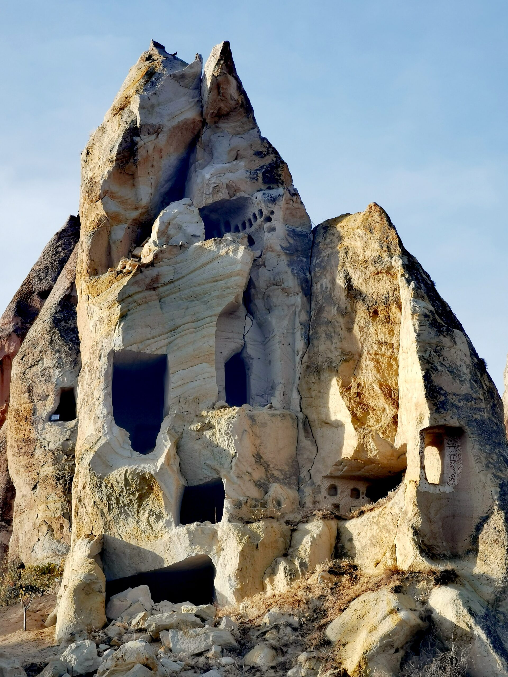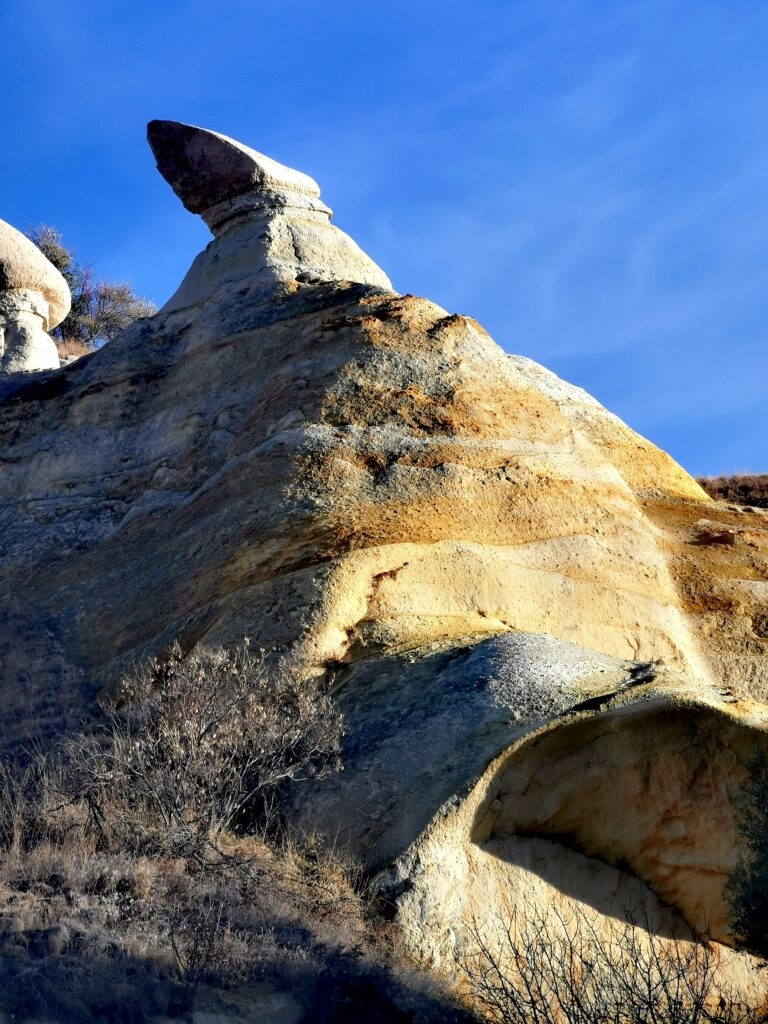 La Cappadoce! Depuis le temps que j’en rêve… Et bien c’est encore plus incroyable et magnifique que ce que j’imaginais!!!! Les villages sont nichés dans des vallées somptueuses où d’innombrables formations rocheuses aux formes et couleurs variées envahissent le paysage. De nombreuses maisons et niches à pigeons sont creusées dans la roche où que se porte le regard. Le Mont Erciyes, paré de sa plus belle robe de neige, pointe à l’horizon. Les hôtels ressemblent à des monuments Greco-Romains ou à des palais troglodytes. Et bien sûr tous les prix sont multipliés par trois! Aujourd’hui, en arrivant, nous posons nos affaires à l’hôtel, prenons un bus pour Uçisar et randonnons dans l’incroyable vallée des pigeons. D’ailleurs, si les hommes creusèrent tant de pigeonniers au douzième siècle, c’était pour inciter les oiseaux à s’installer dans la région et fertiliser de leurs fientes sacrées ces terres arides…