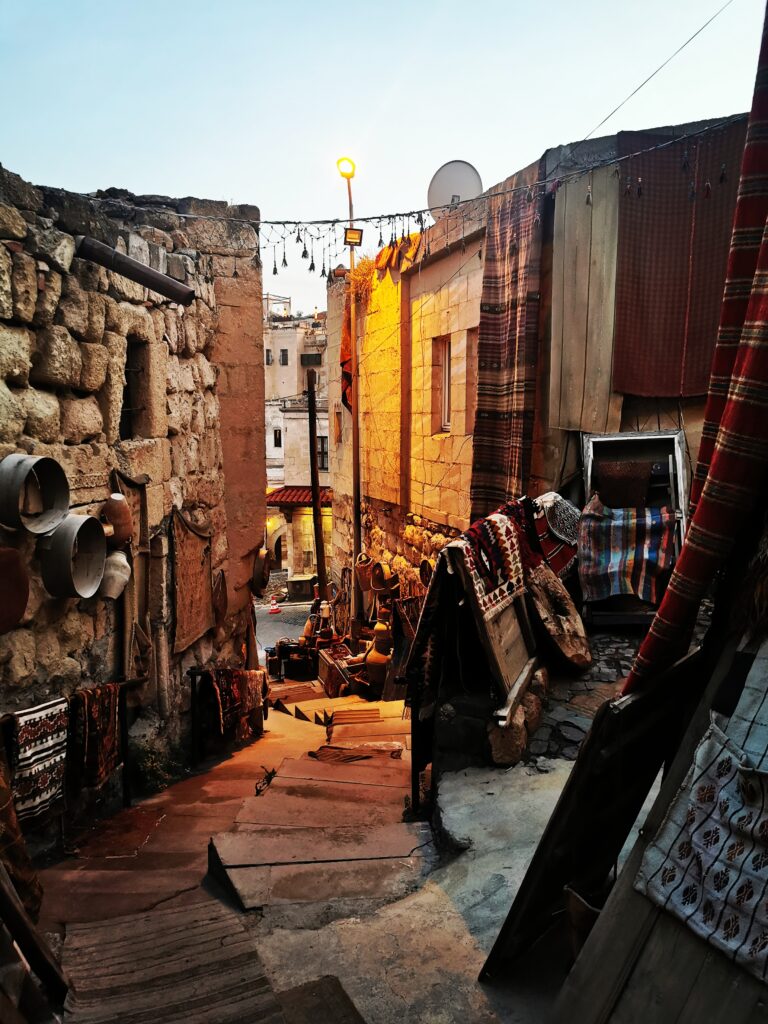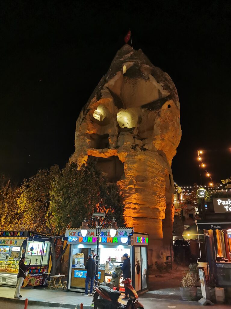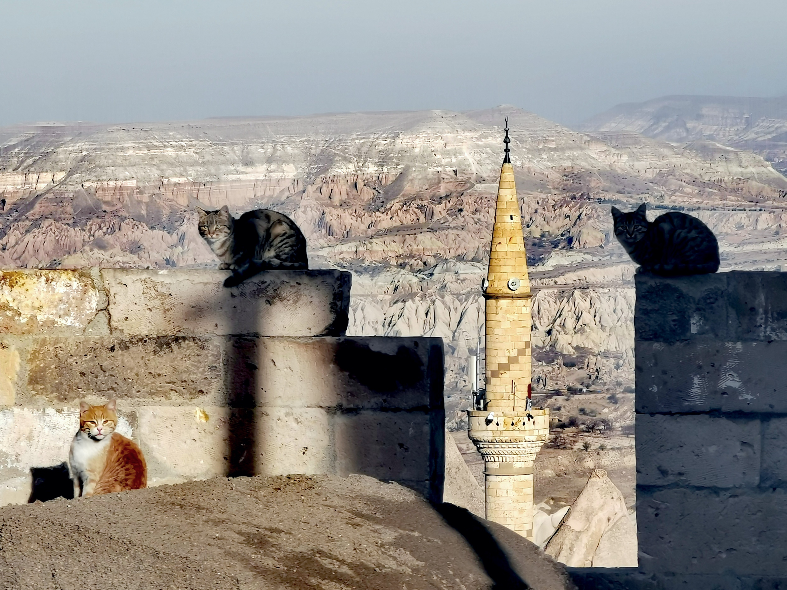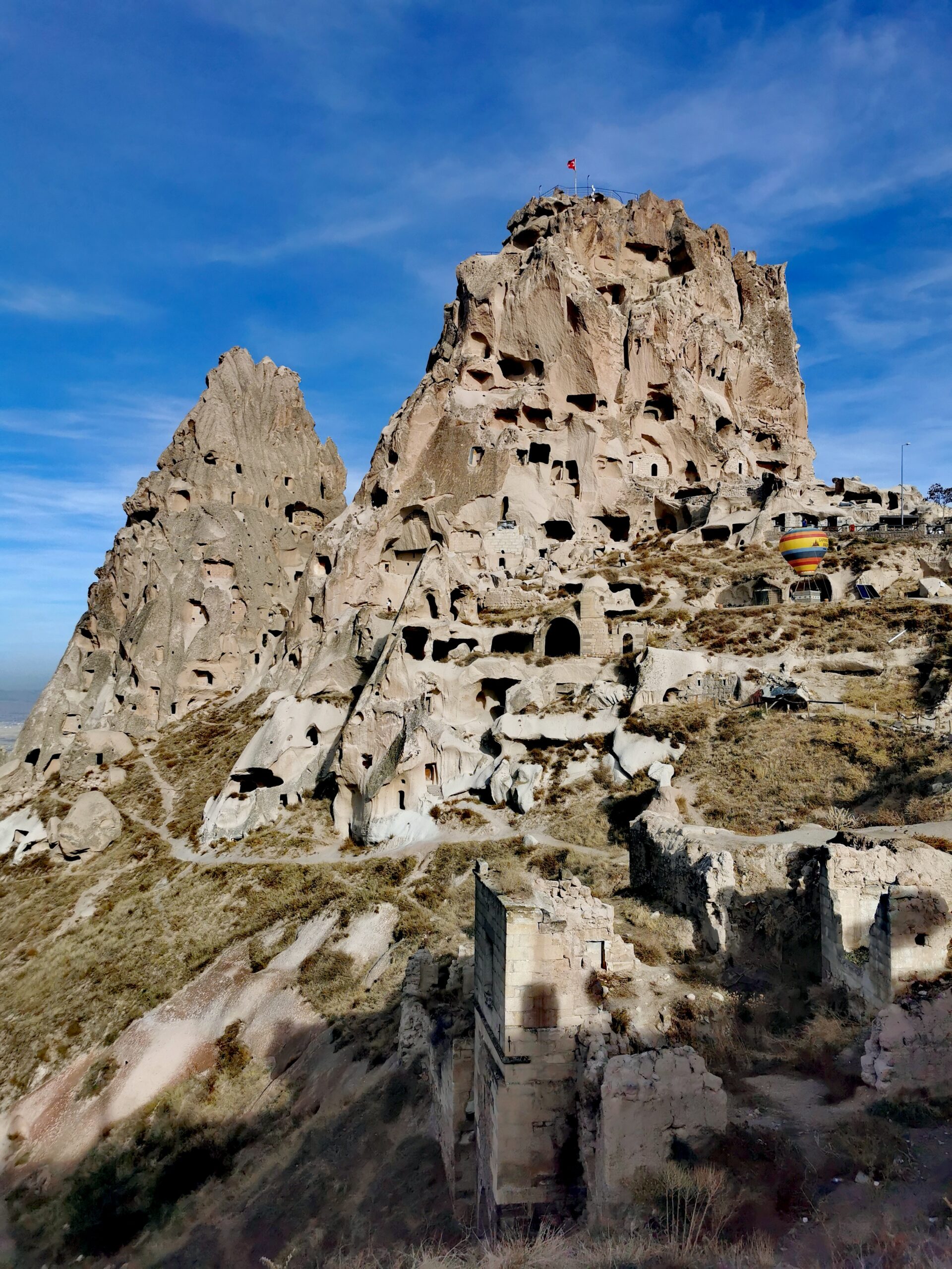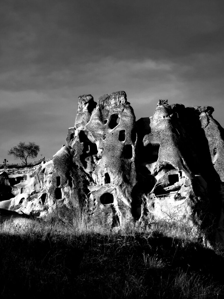 La Cappadoce! Depuis le temps que j’en rêve… Et bien c’est encore plus incroyable et magnifique que ce que j’imaginais!!!! Les villages sont nichés dans des vallées somptueuses où d’innombrables formations rocheuses aux formes et couleurs variées envahissent le paysage. De nombreuses maisons et niches à pigeons sont creusées dans la roche où que se porte le regard. Le Mont Erciyes, paré de sa plus belle robe de neige, pointe à l’horizon. Les hôtels ressemblent à des monuments Greco-Romains ou à des palais troglodytes. Et bien sûr tous les prix sont multipliés par trois! Aujourd’hui, en arrivant, nous posons nos affaires à l’hôtel, prenons un bus pour Uçisar et randonnons dans l’incroyable vallée des pigeons. D’ailleurs, si les hommes creusèrent tant de pigeonniers au douzième siècle, c’était pour inciter les oiseaux à s’installer dans la région et fertiliser de leurs fientes sacrées ces terres arides…