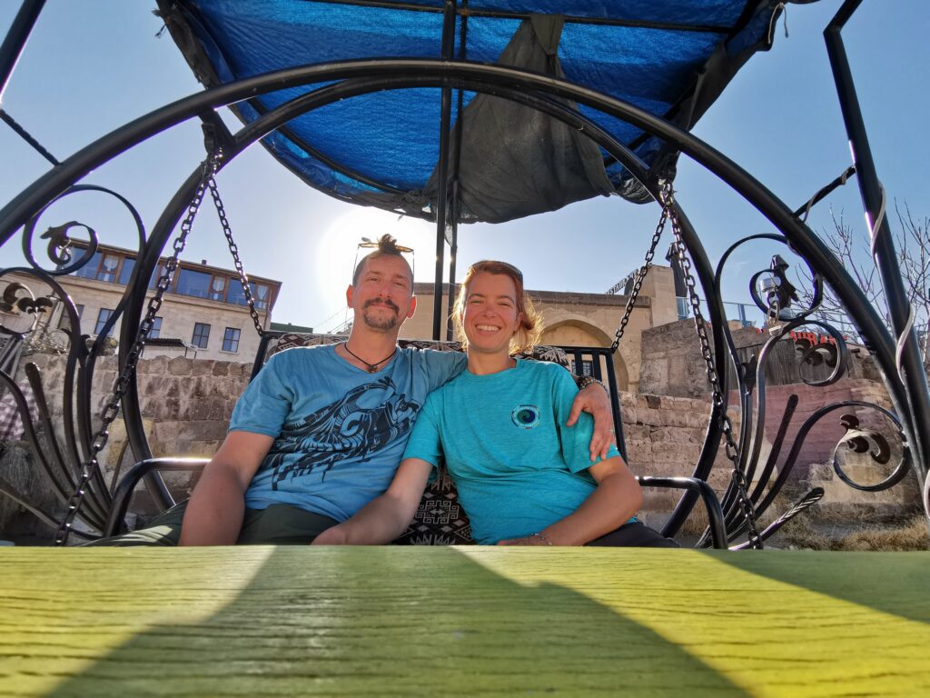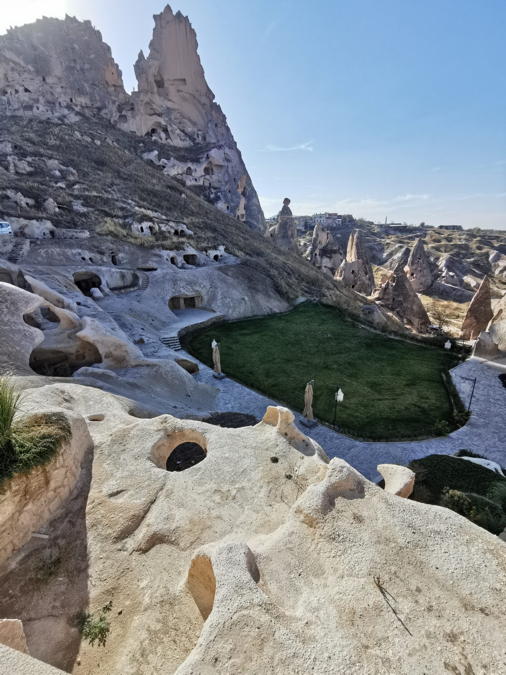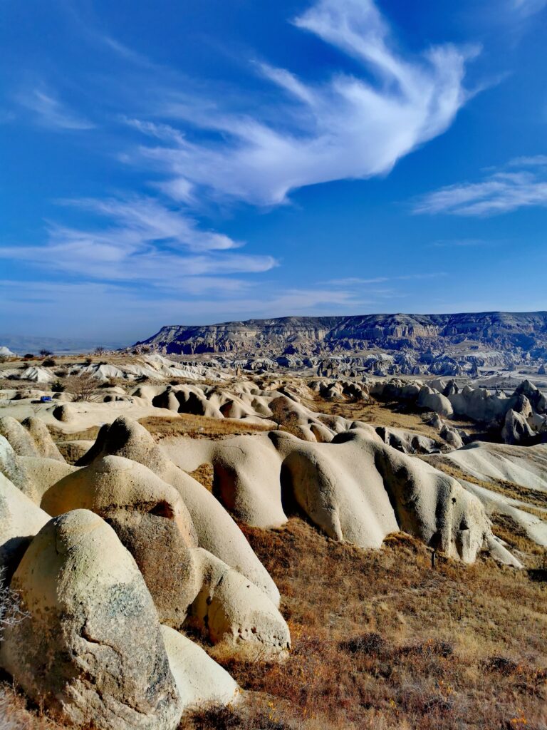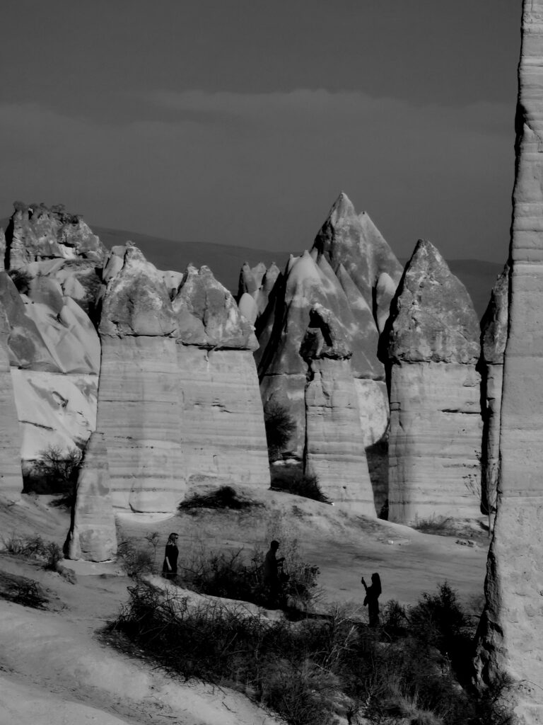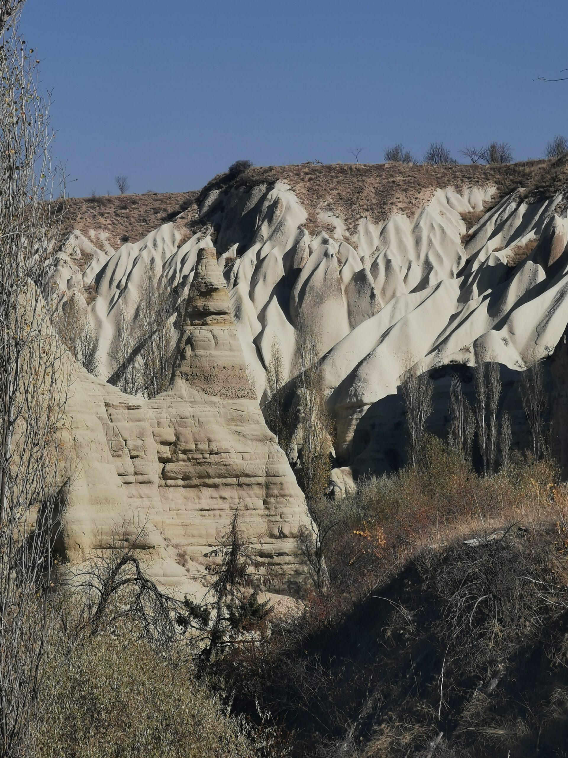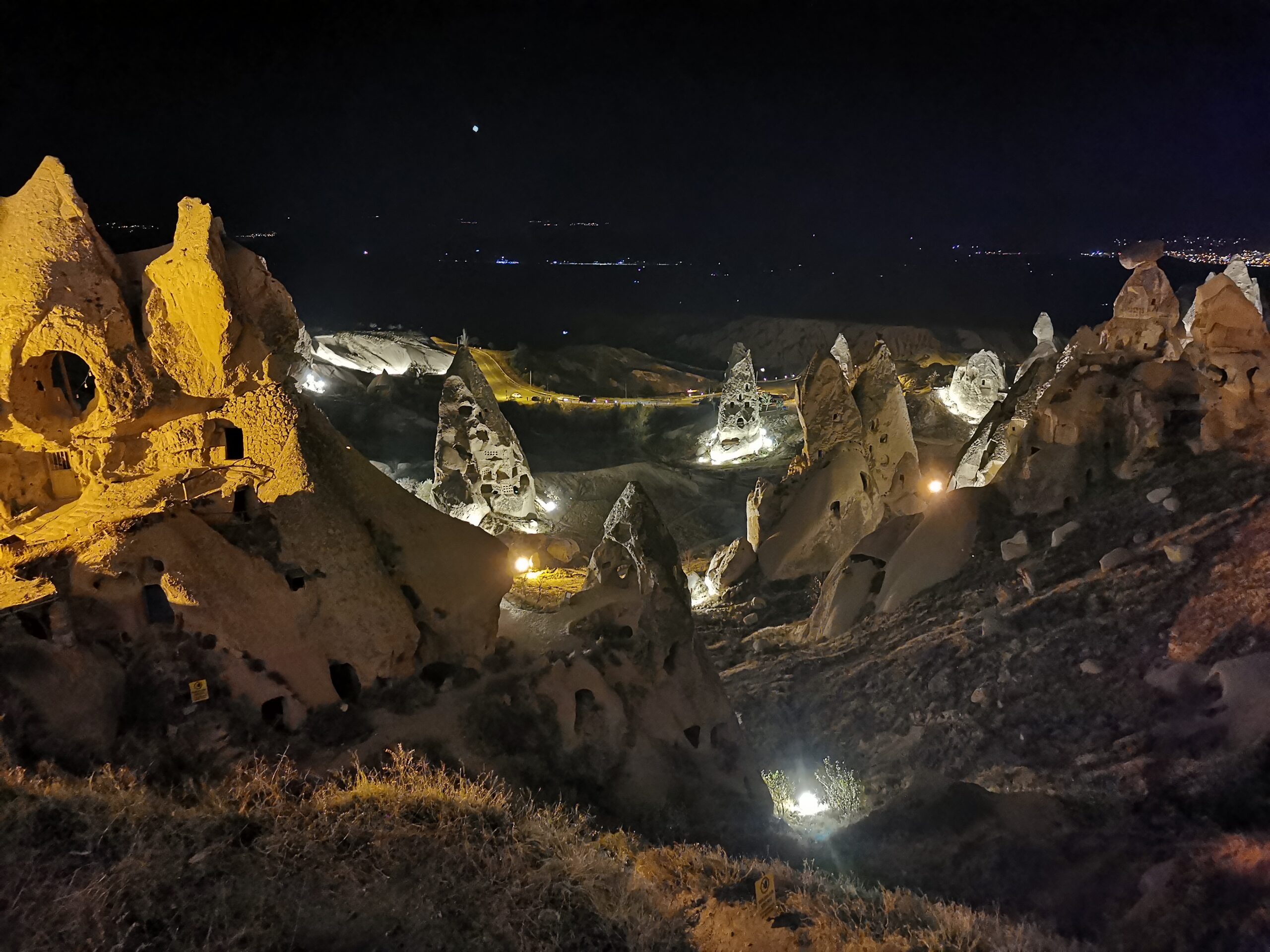 Aujourd’hui nous randonnons 14km à travers la Love Valley (qui doit son nom aux nombreuses formations rocheuses phalliques), la White Valley et à nouveau la Pigeon Valley. Je pensais voir 2 ou 3 cheminées de fée comme sur les cartes postales mais la région en contient des milliers, c’est hallucinant. Je n’avais jamais vu un décors pareil, je comprends l’engouement des touristes pour la Cappadoce!!!! Le soir nous retournons en bus à Uçisar pour y dîner puis redescendre de nuit à travers la Pigeon Valley illuminée mais nous finissons par abandonner et rentrer en stop car seule une petite partie est illuminée et le reste est bien sombre et un peu flippant…