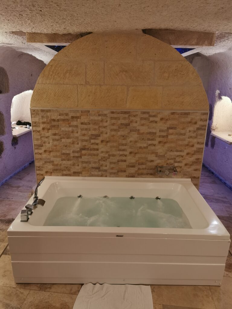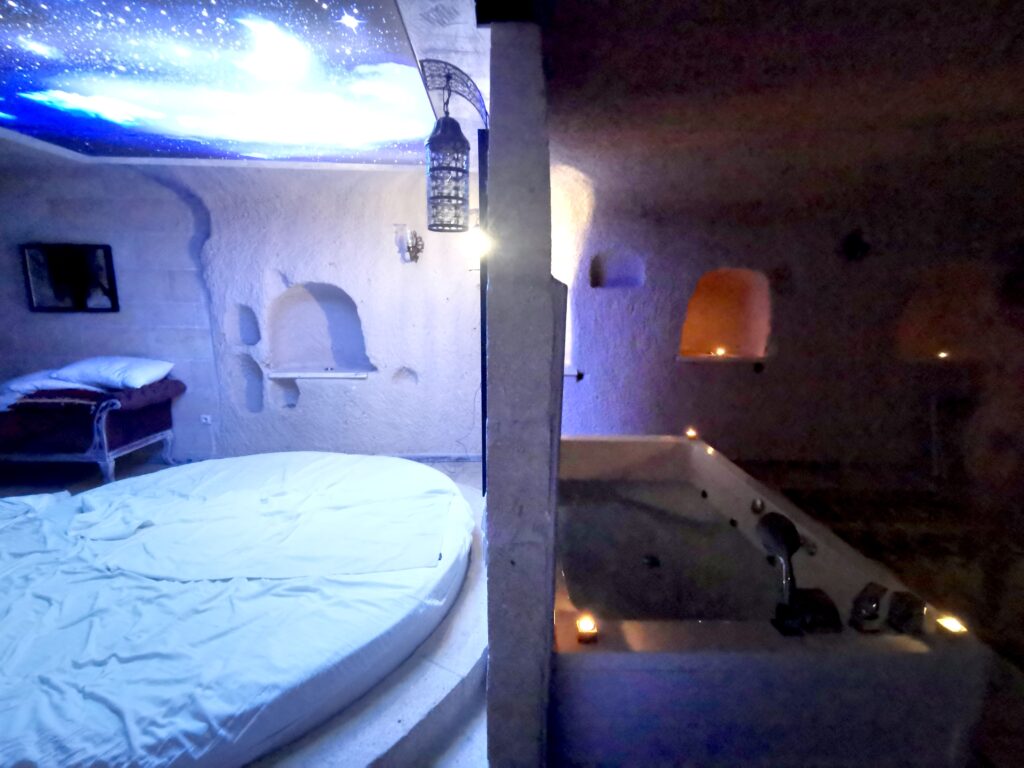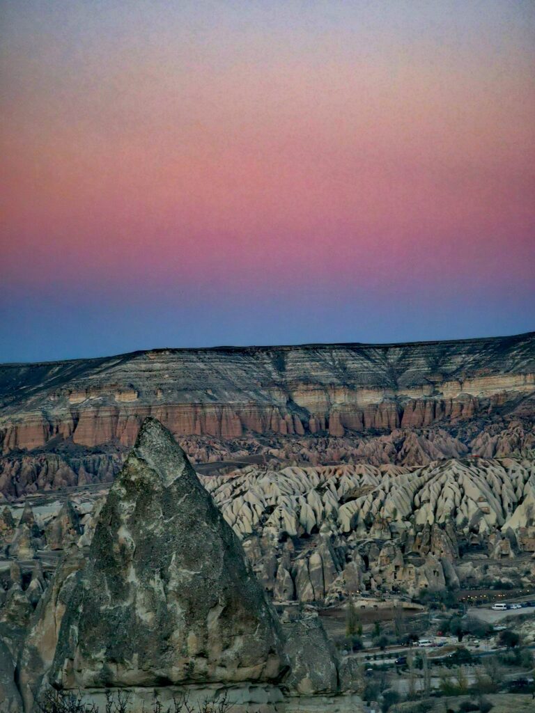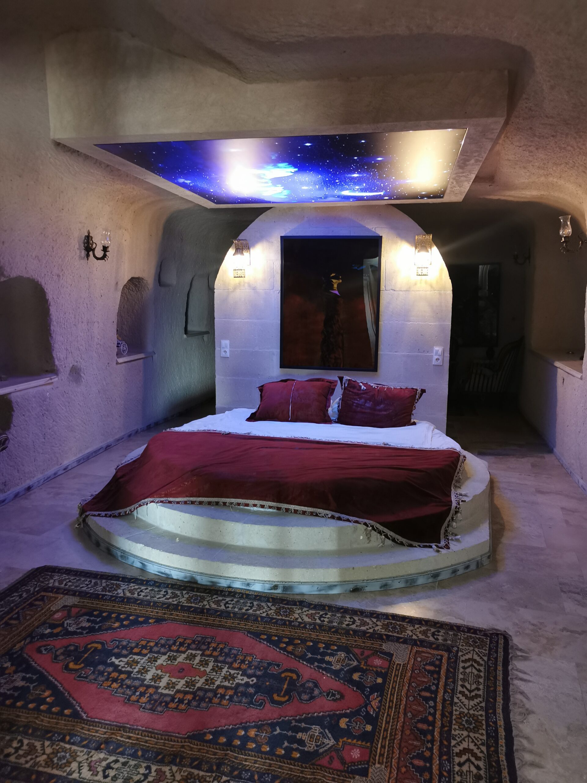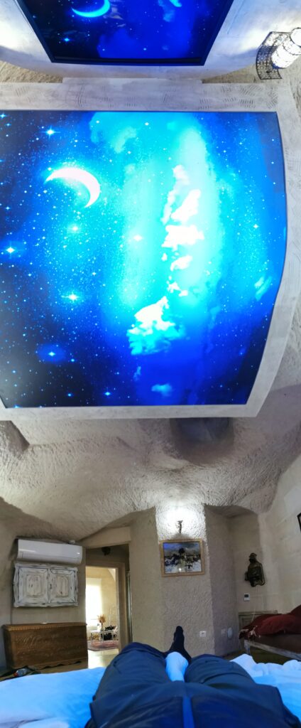 Aujourd’hui c’est grand luxe!!!!! Pour le prix de 2 lits de dortoir en auberge bas de gamme à Paris nous nous sommes payé la Queen Suite dans un Hôtel bien classe… Immense lit rond avec plafond étoilé, jacuzzi, sauna et bain turque dans la chambre!!!! Nous avons également fait une courte randonnée dans la vallée de Zemi que nous n’avions pas encore explorée. Cheminées de fée en forme de bi… euh, pardon en forme de fusées (Rocket Valley), Églises troglodytes et coucher de soleil incroyable sur Göreme.