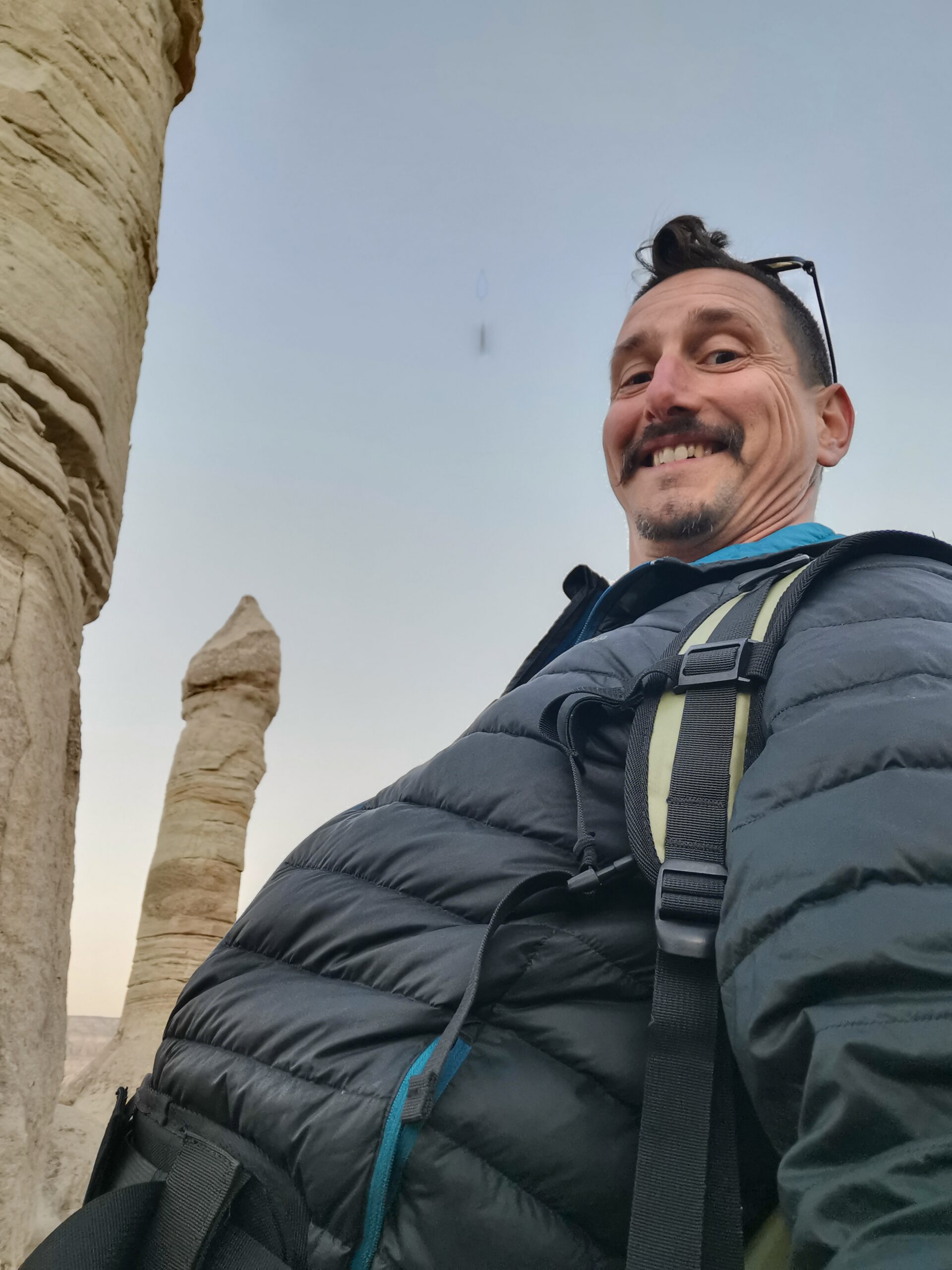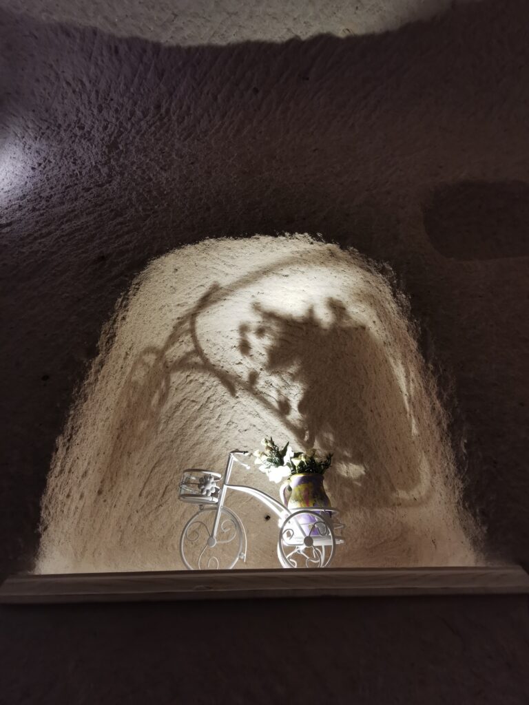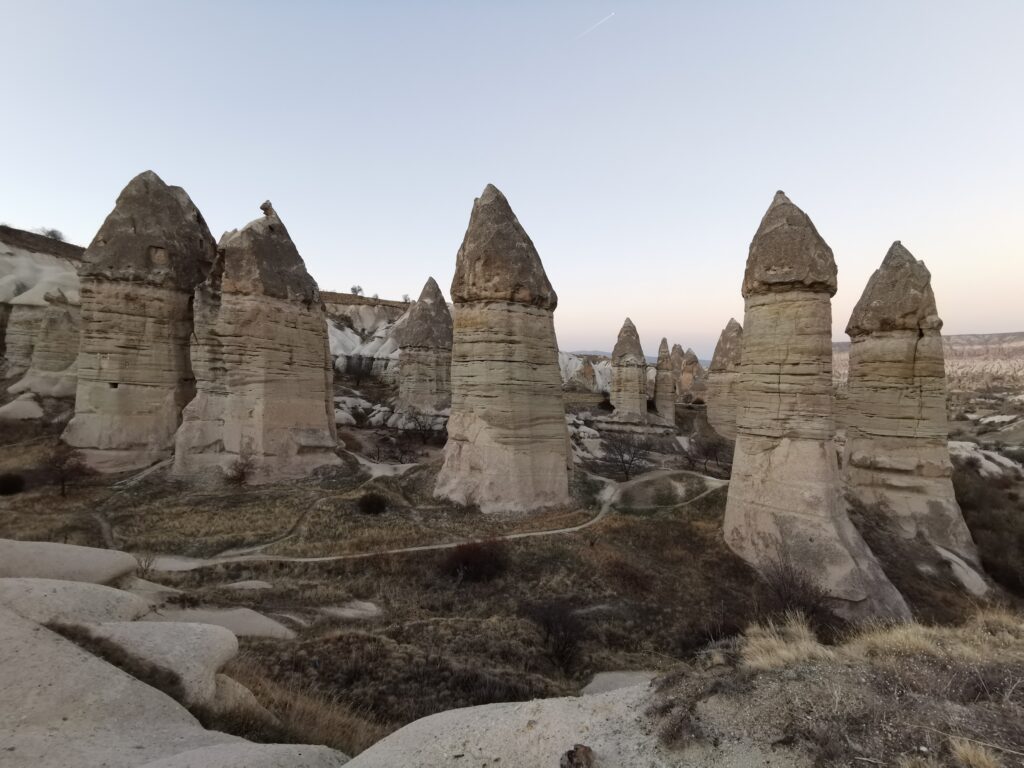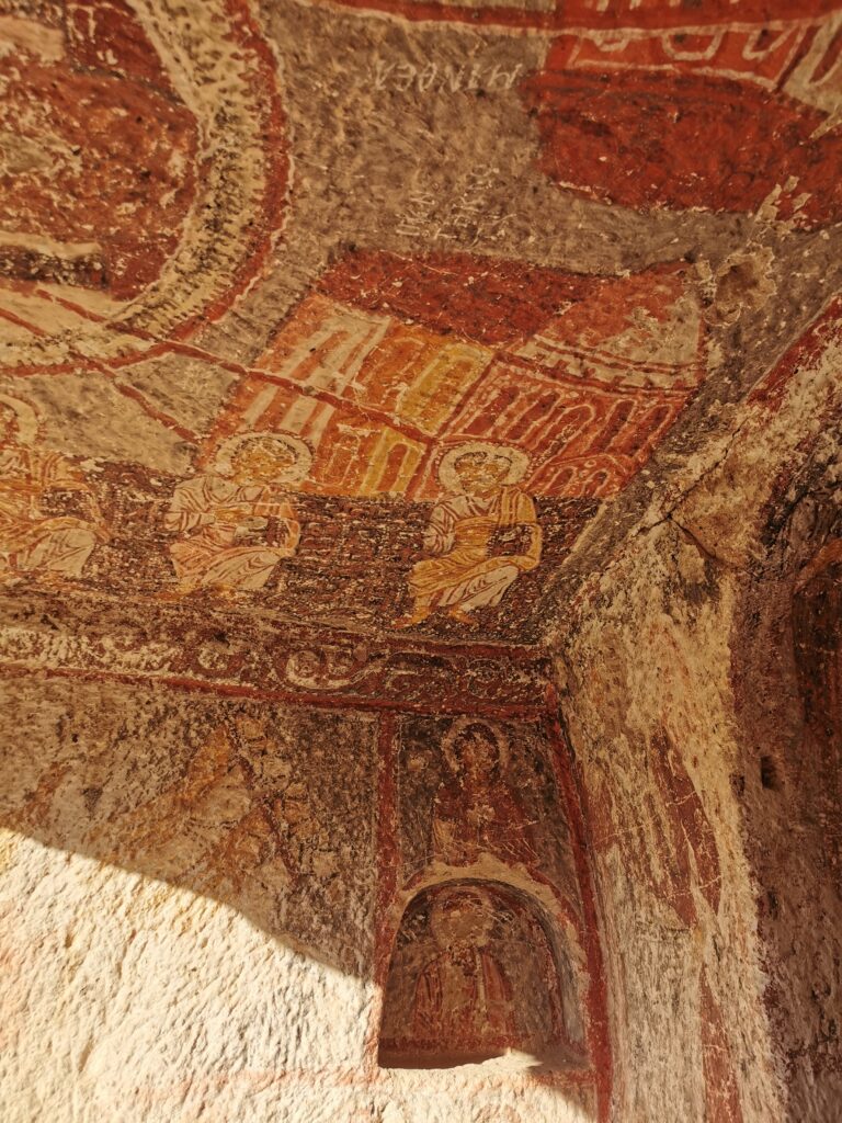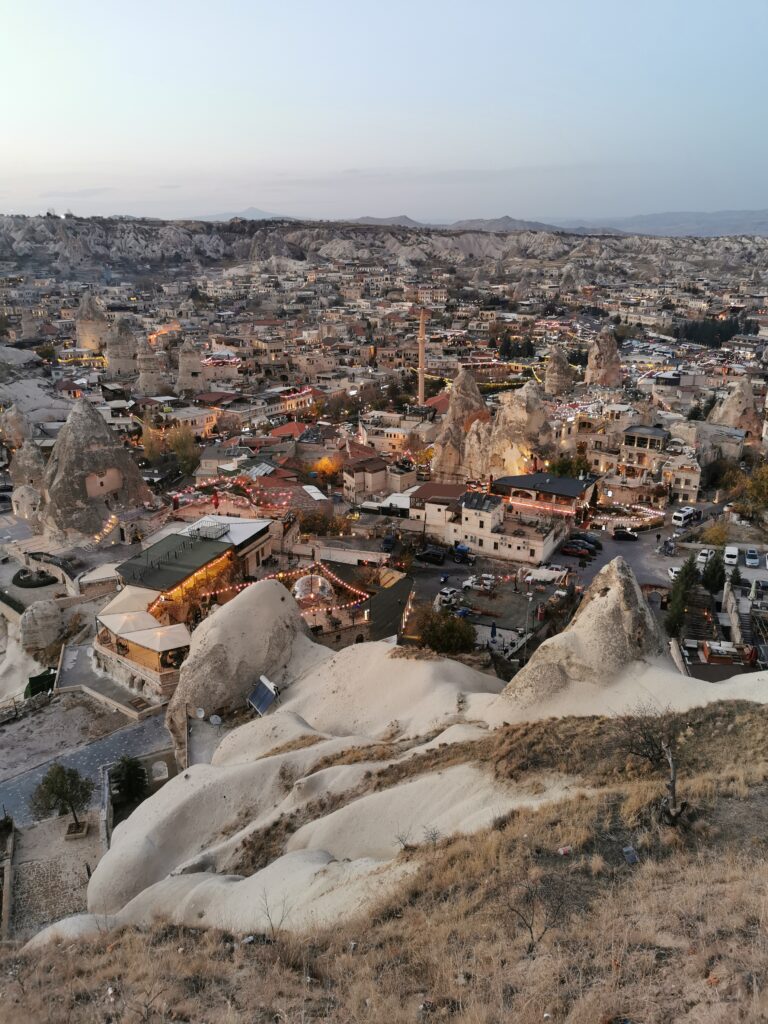 Aujourd’hui c’est grand luxe!!!!! Pour le prix de 2 lits de dortoir en auberge bas de gamme à Paris nous nous sommes payé la Queen Suite dans un Hôtel bien classe… Immense lit rond avec plafond étoilé, jacuzzi, sauna et bain turque dans la chambre!!!! Nous avons également fait une courte randonnée dans la vallée de Zemi que nous n’avions pas encore explorée. Cheminées de fée en forme de bi… euh, pardon en forme de fusées (Rocket Valley), Églises troglodytes et coucher de soleil incroyable sur Göreme.