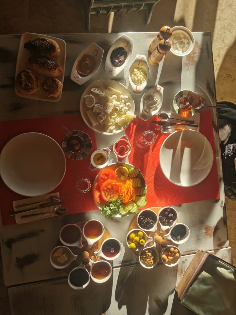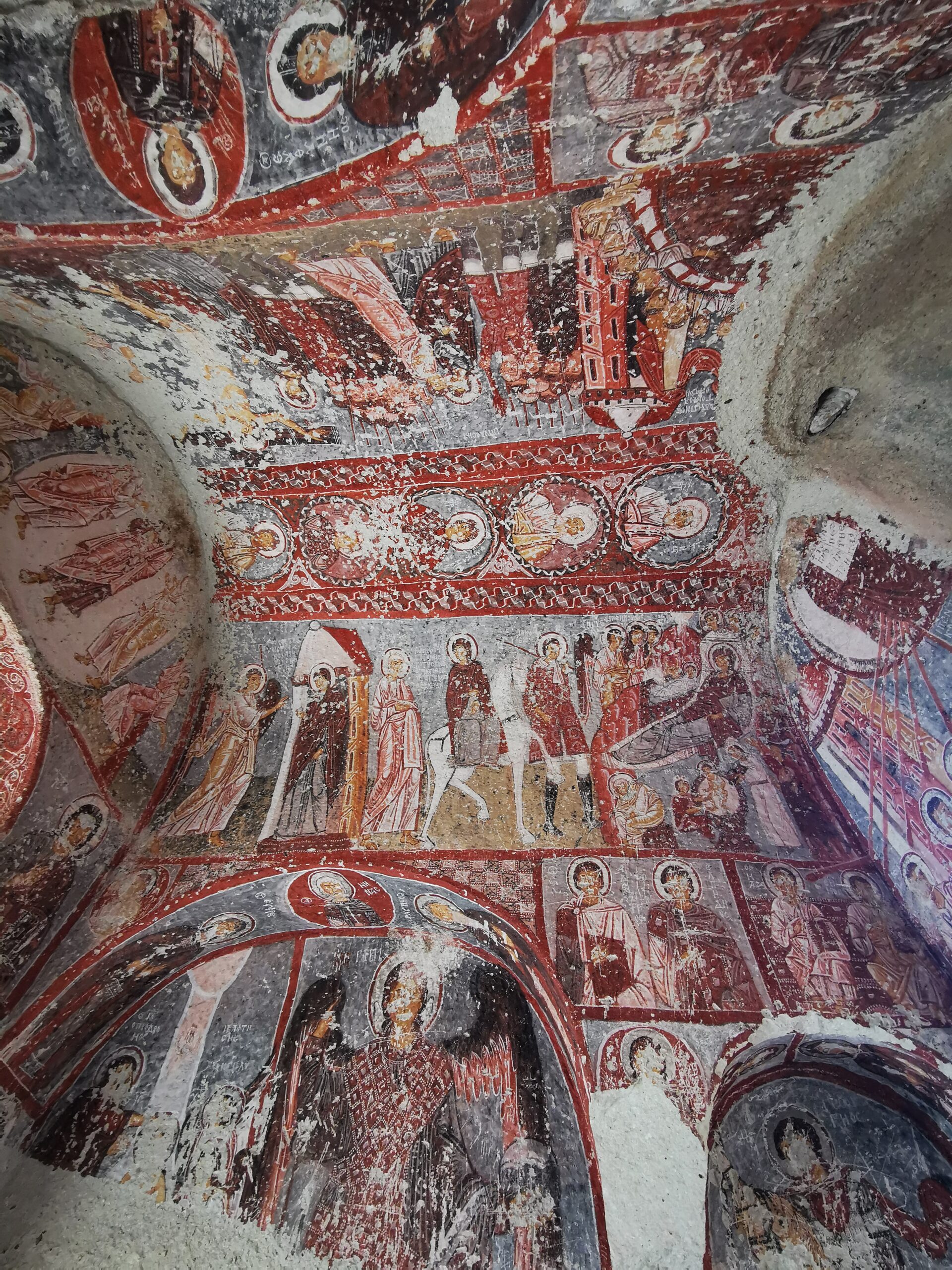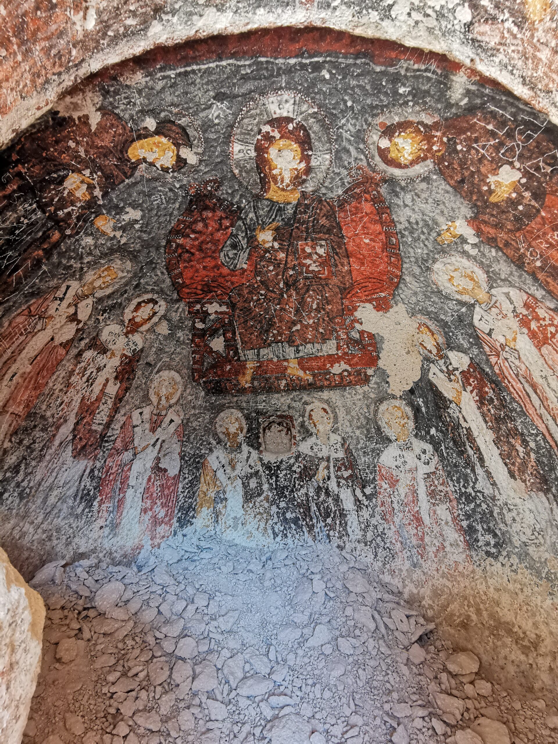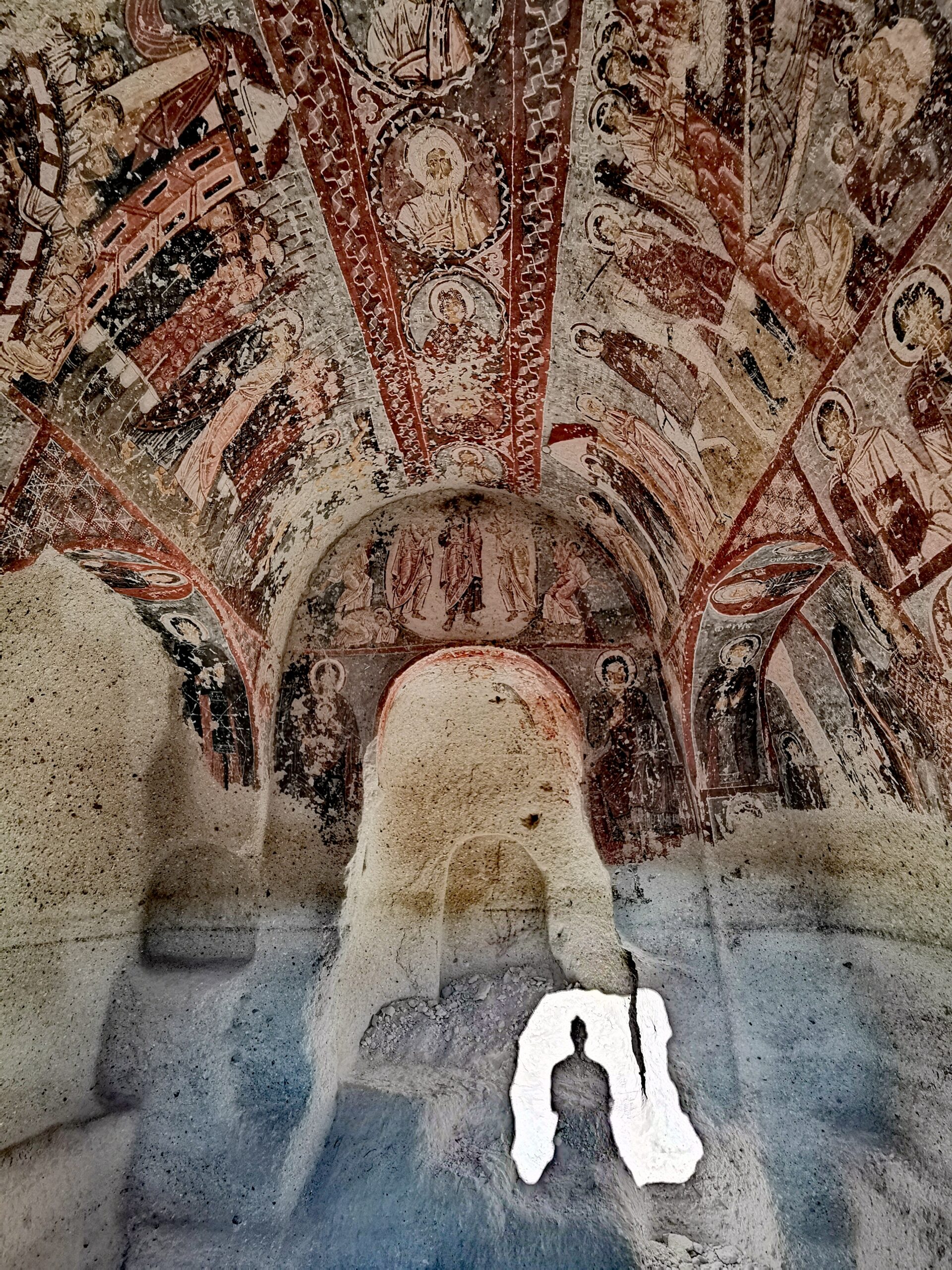 Aujourd’hui c’est grand luxe!!!!! Pour le prix de 2 lits de dortoir en auberge bas de gamme à Paris nous nous sommes payé la Queen Suite dans un Hôtel bien classe… Immense lit rond avec plafond étoilé, jacuzzi, sauna et bain turque dans la chambre!!!! Nous avons également fait une courte randonnée dans la vallée de Zemi que nous n’avions pas encore explorée. Cheminées de fée en forme de bi… euh, pardon en forme de fusées (Rocket Valley), Églises troglodytes et coucher de soleil incroyable sur Göreme.