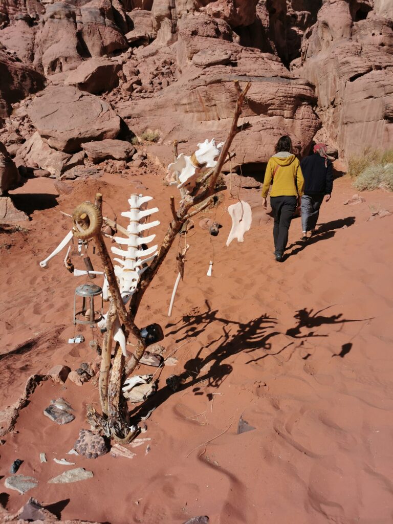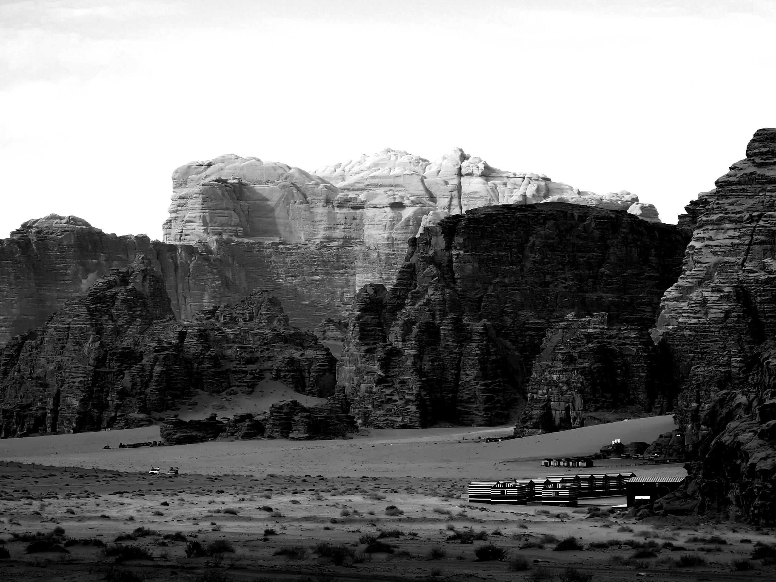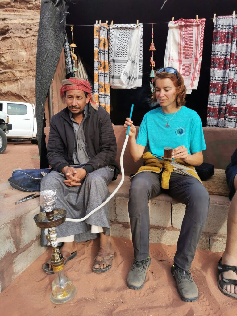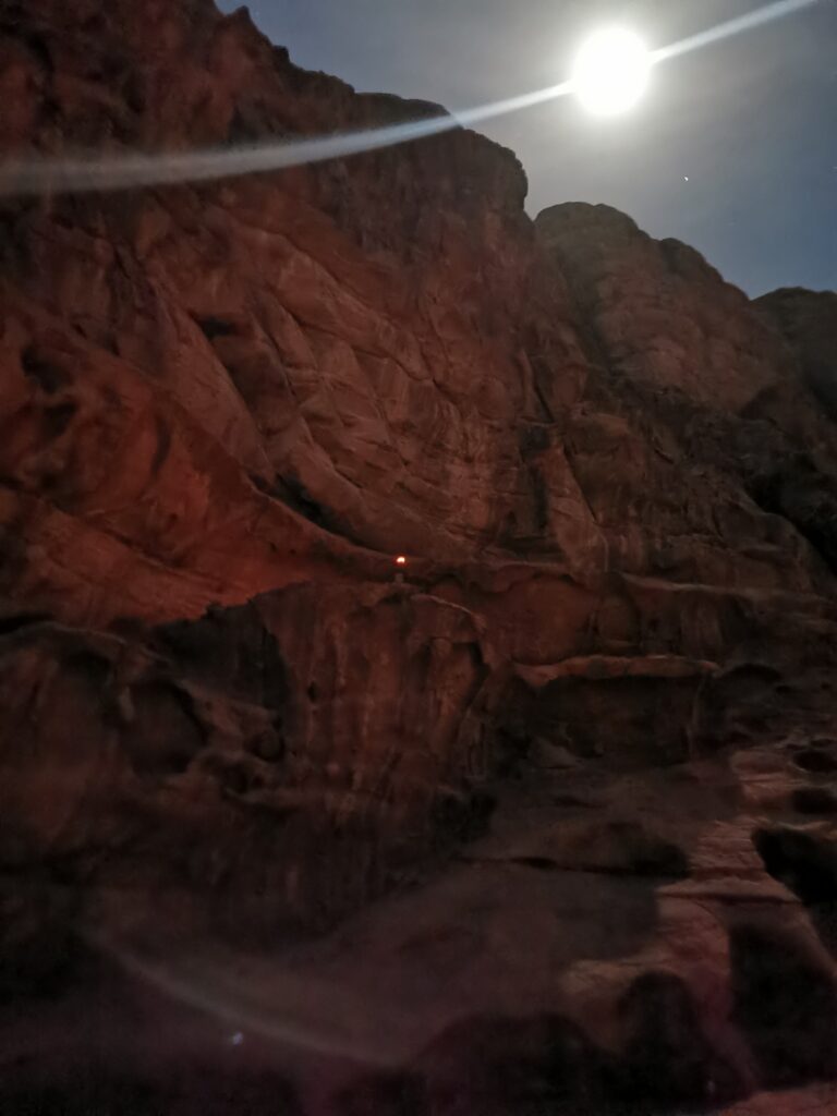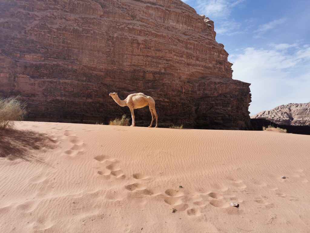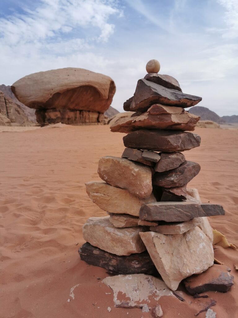 Ce matin nous prenons un bus en direction du Sud du pays où nous attendent les incroyables paysages désertiques/montagneux Du Wadi Rum. Cela fait des années que je rêve de voir ce lieu de mes propres yeux et je n’ai pas été déçu! Une plaine sablonneuse de couleur rouge Mars à 1000m d’altitude d’où s’érigent vers le ciel de nombreuses montagnes (Jbel) jusqu’à 1854m. Et dans ces montagnes on trouve des canyons asséchés, des arches, des falaises vertigineuses, des formes torturées par l’eau (dans le passé) et le vent et des couleurs variées dues aux différentes strates géologiques. Des campements accueillent les touristes, des vieilles jeeps rafistolées et des dromadaires parcourent ce paysage martien et quelques plantes survivent tant bien que mal dans cet univers hostile! Le soir nous mangeons un repas cuit à l’étouffée sous le sable. Et c’est Abdullah qui nous emmène pour un Full Day Trip dans ce décor, qui prend soin de nous, nous sourit, nous cuisine un bon déjeuner sur un feu improvisé, nous prépare du thé et nous rappelle sans cesse “Take your time!”. Le coucher de soleil est flamboyant puis la nuit étincelle d’étoiles alors que le désert s’illumine sous une lune bientôt pleine…