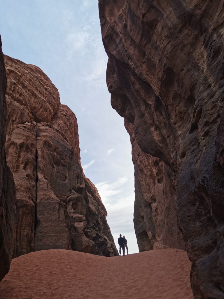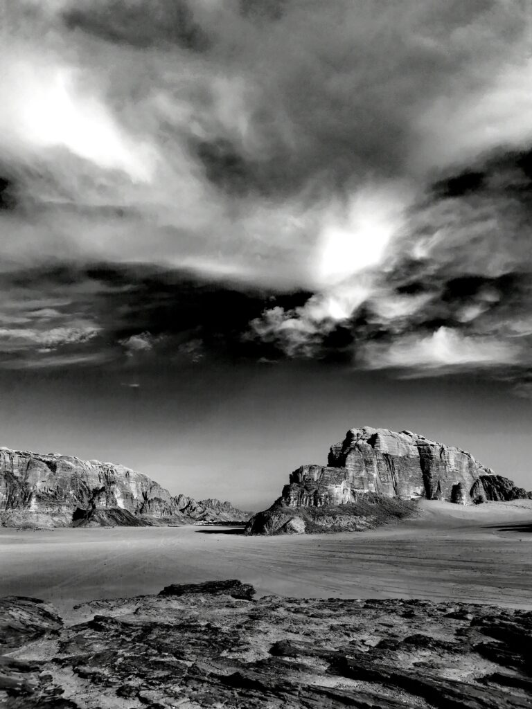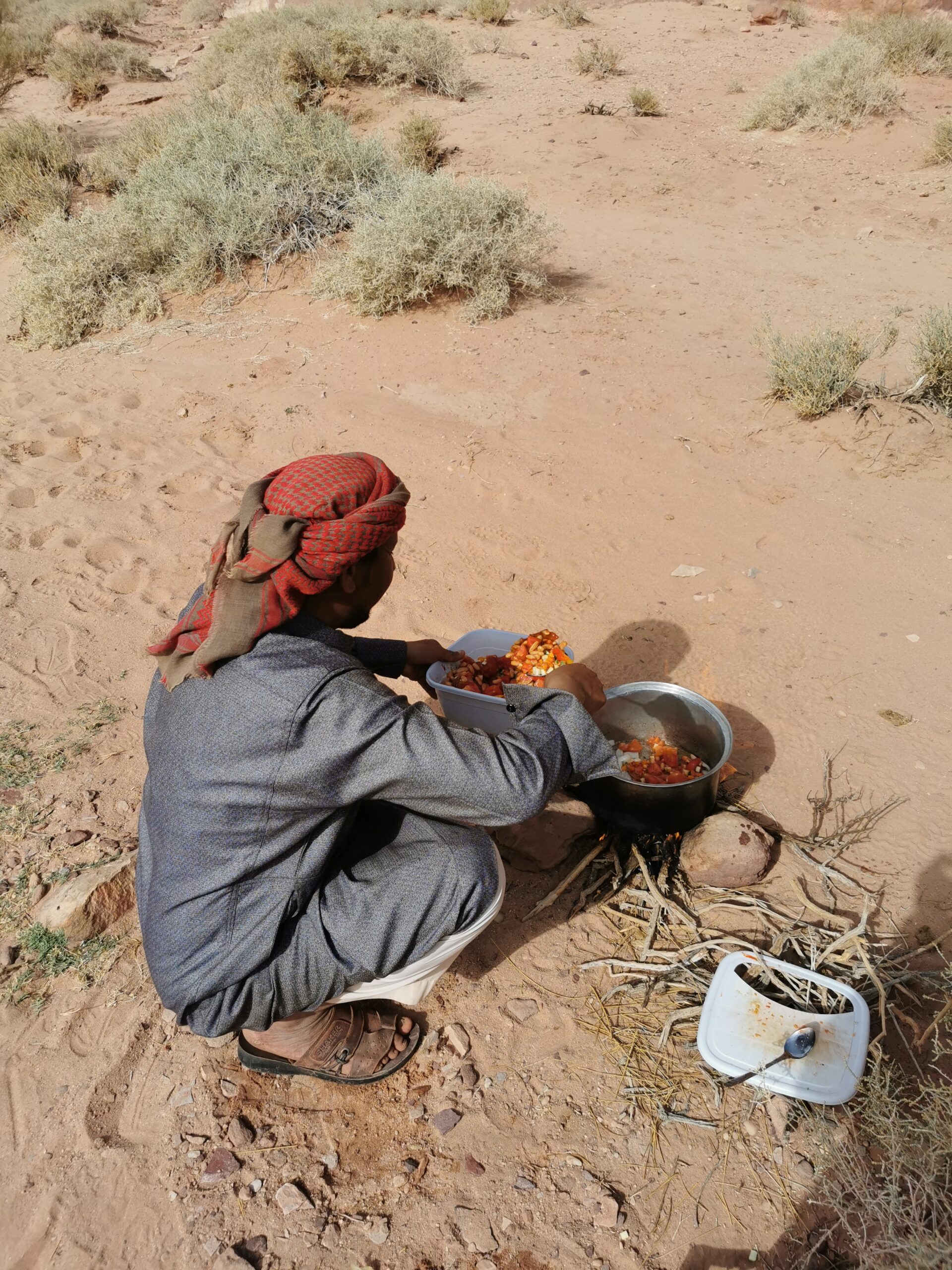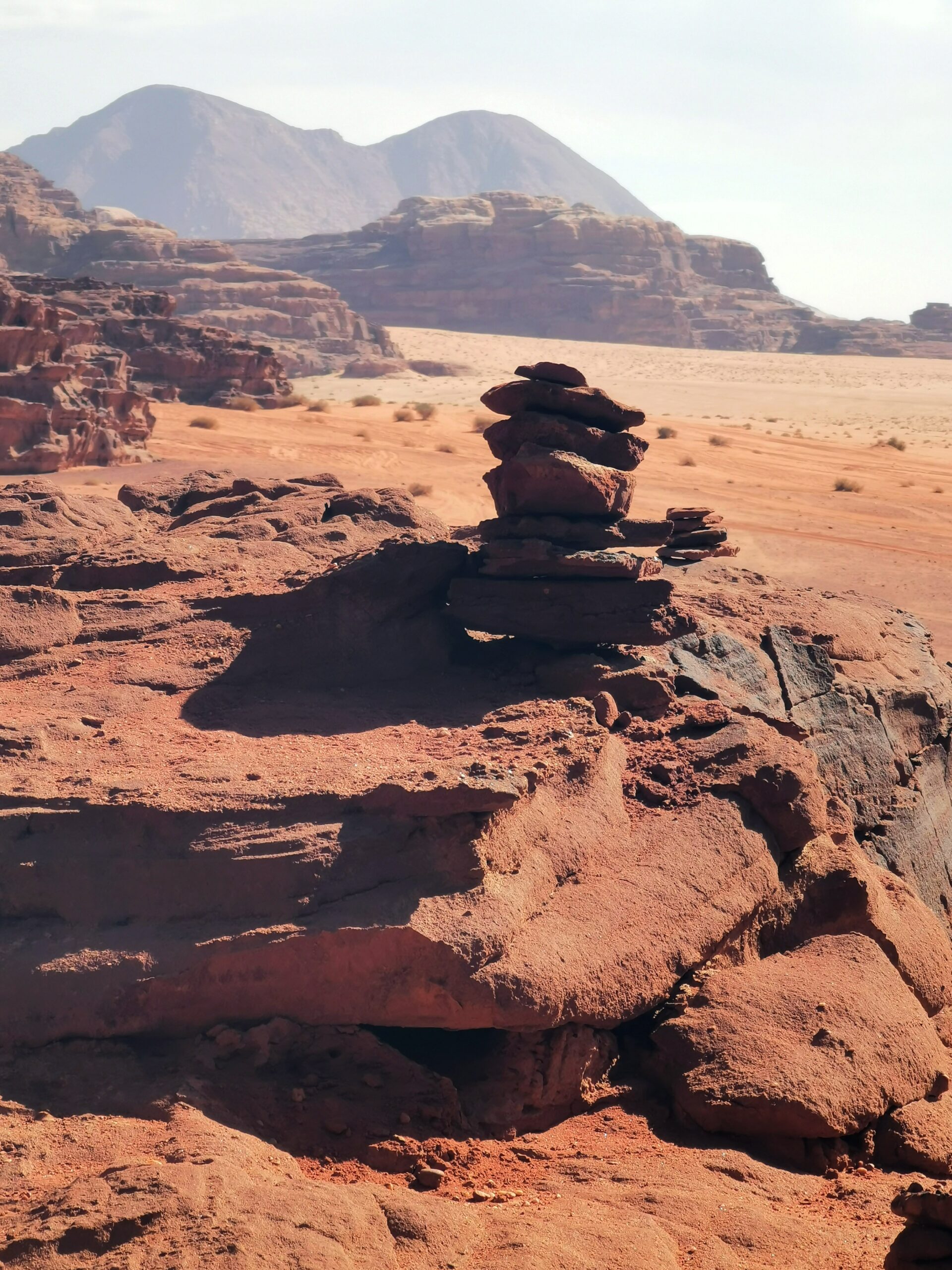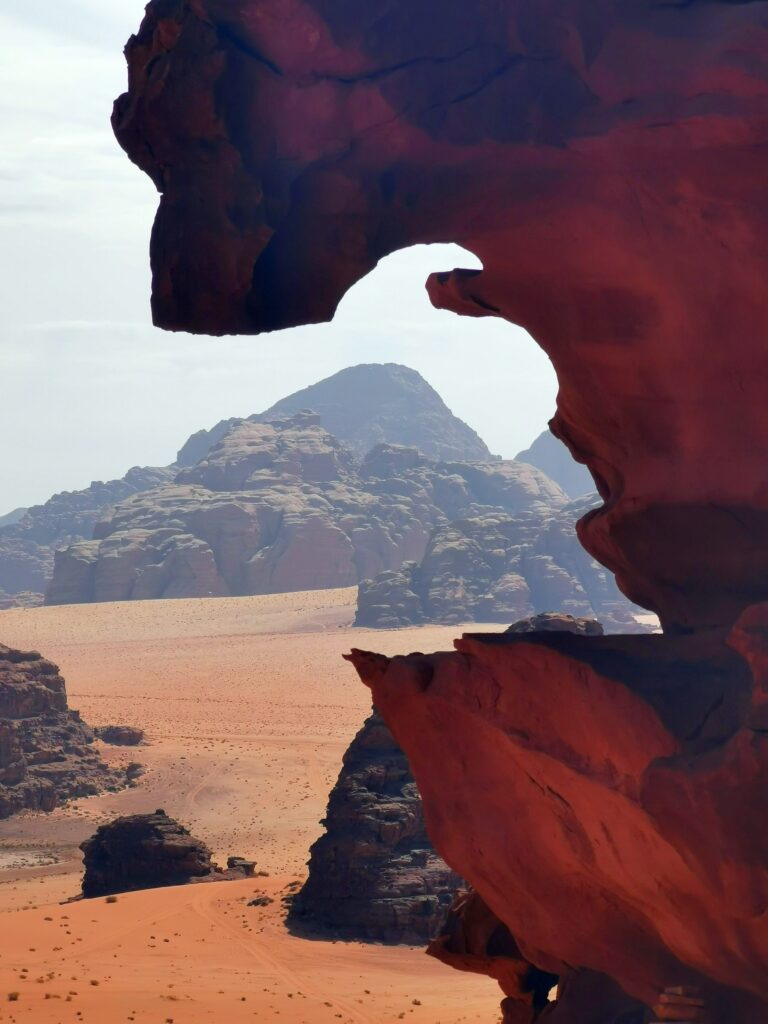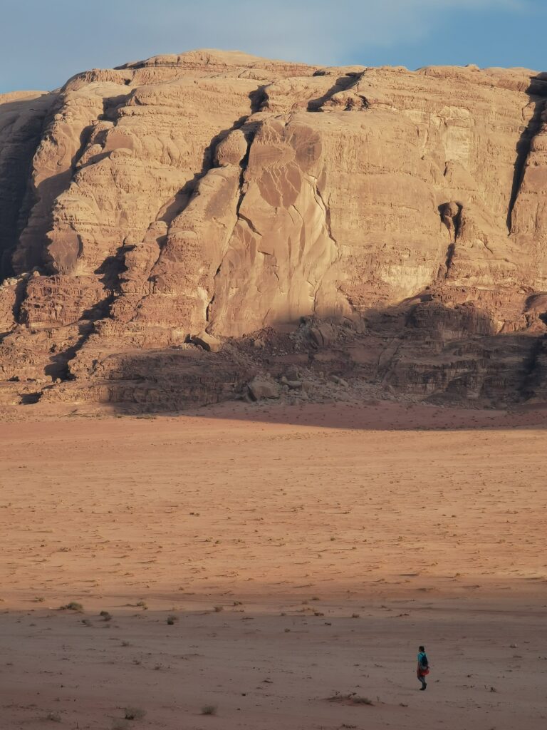 Ce matin nous prenons un bus en direction du Sud du pays où nous attendent les incroyables paysages désertiques/montagneux Du Wadi Rum. Cela fait des années que je rêve de voir ce lieu de mes propres yeux et je n’ai pas été déçu! Une plaine sablonneuse de couleur rouge Mars à 1000m d’altitude d’où s’érigent vers le ciel de nombreuses montagnes (Jbel) jusqu’à 1854m. Et dans ces montagnes on trouve des canyons asséchés, des arches, des falaises vertigineuses, des formes torturées par l’eau (dans le passé) et le vent et des couleurs variées dues aux différentes strates géologiques. Des campements accueillent les touristes, des vieilles jeeps rafistolées et des dromadaires parcourent ce paysage martien et quelques plantes survivent tant bien que mal dans cet univers hostile! Le soir nous mangeons un repas cuit à l’étouffée sous le sable. Et c’est Abdullah qui nous emmène pour un Full Day Trip dans ce décor, qui prend soin de nous, nous sourit, nous cuisine un bon déjeuner sur un feu improvisé, nous prépare du thé et nous rappelle sans cesse “Take your time!”. Le coucher de soleil est flamboyant puis la nuit étincelle d’étoiles alors que le désert s’illumine sous une lune bientôt pleine…