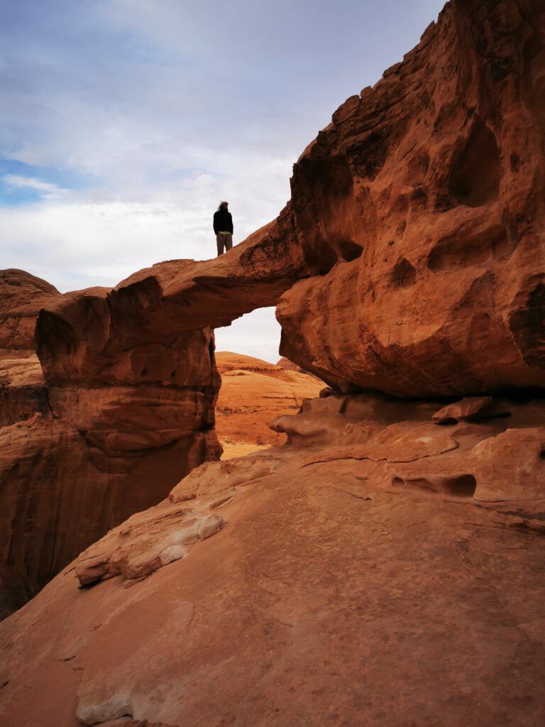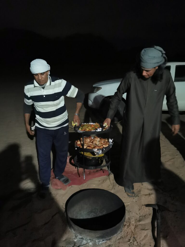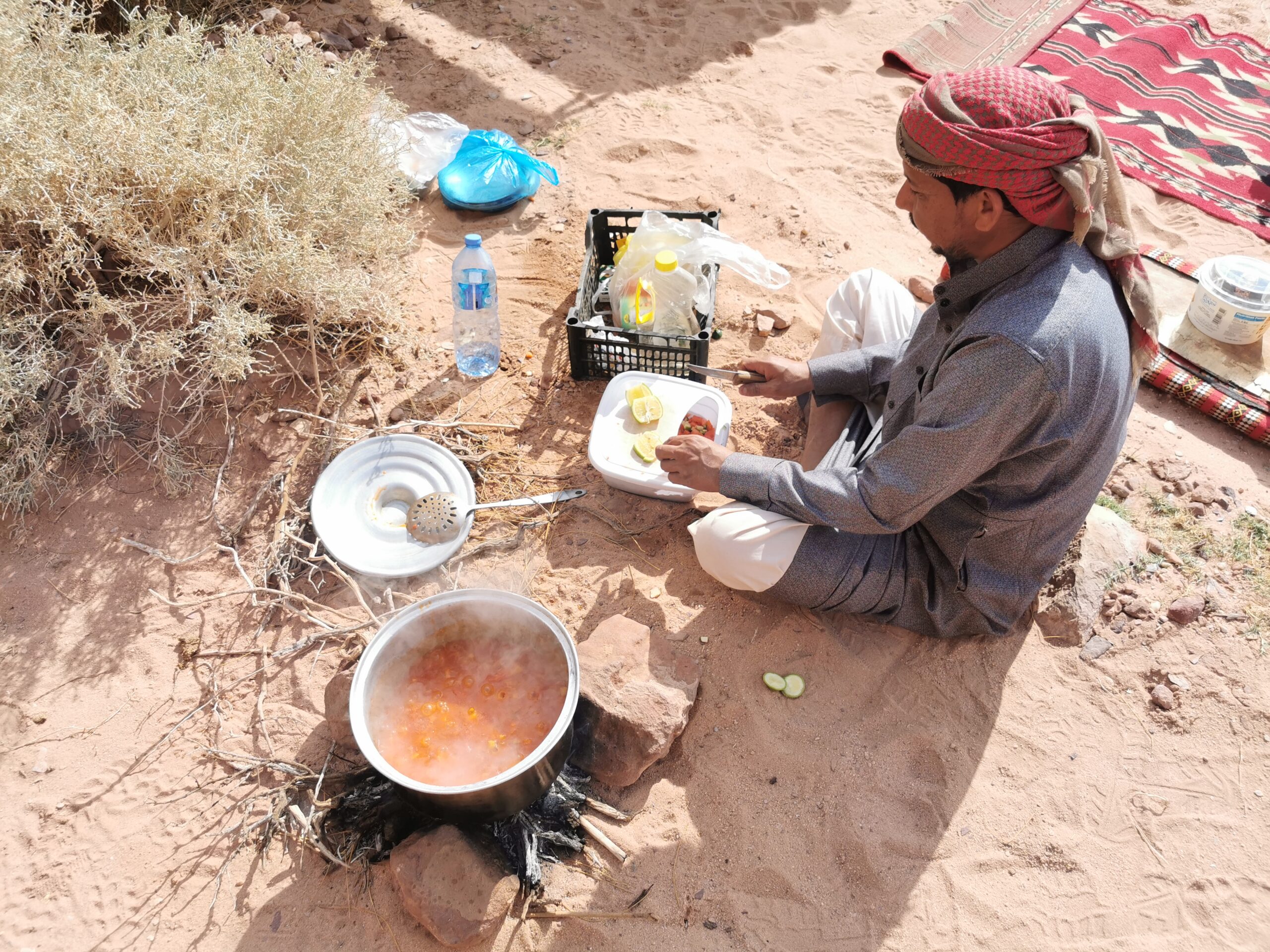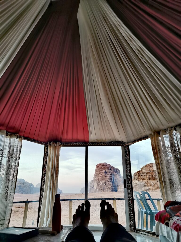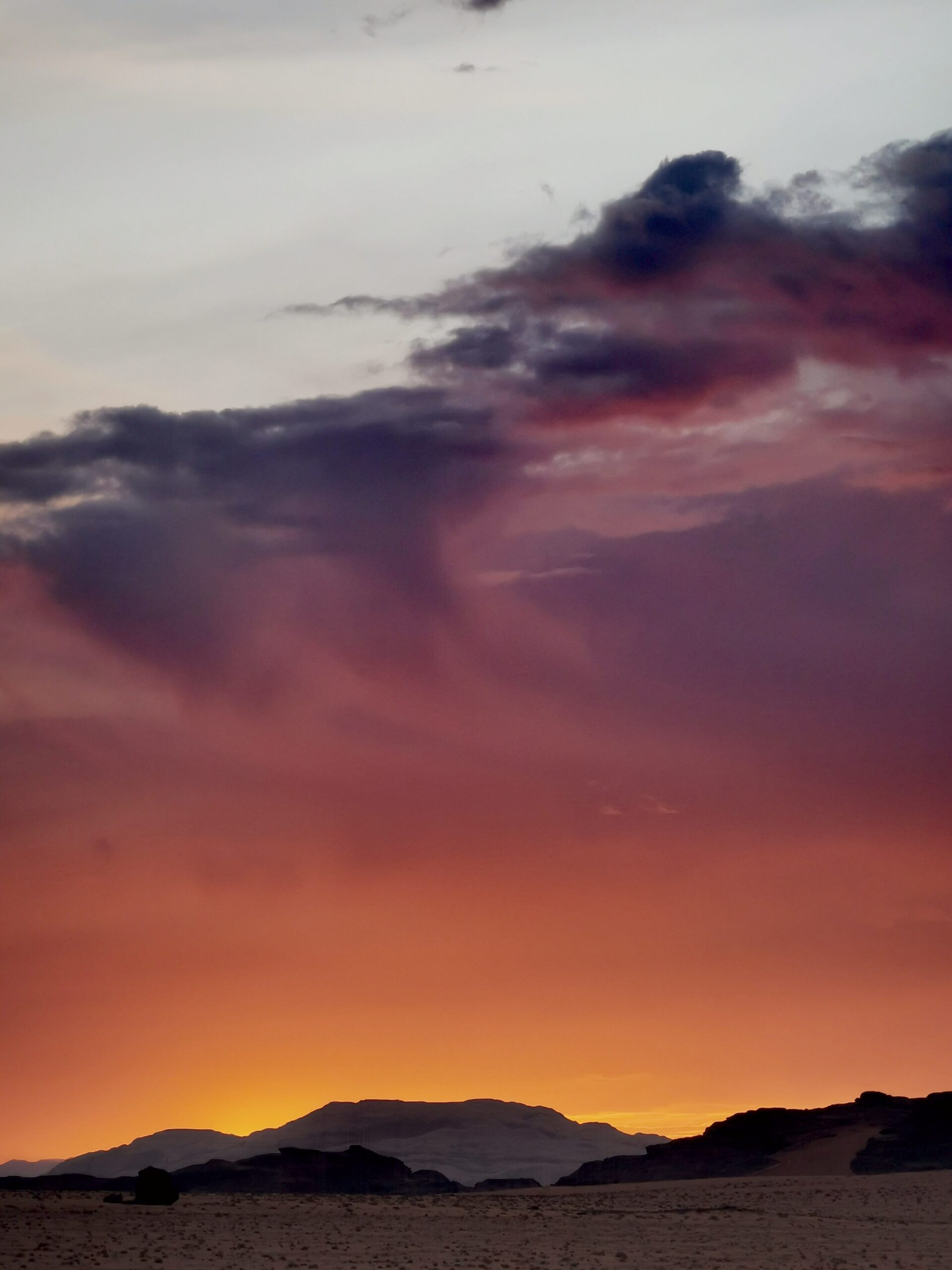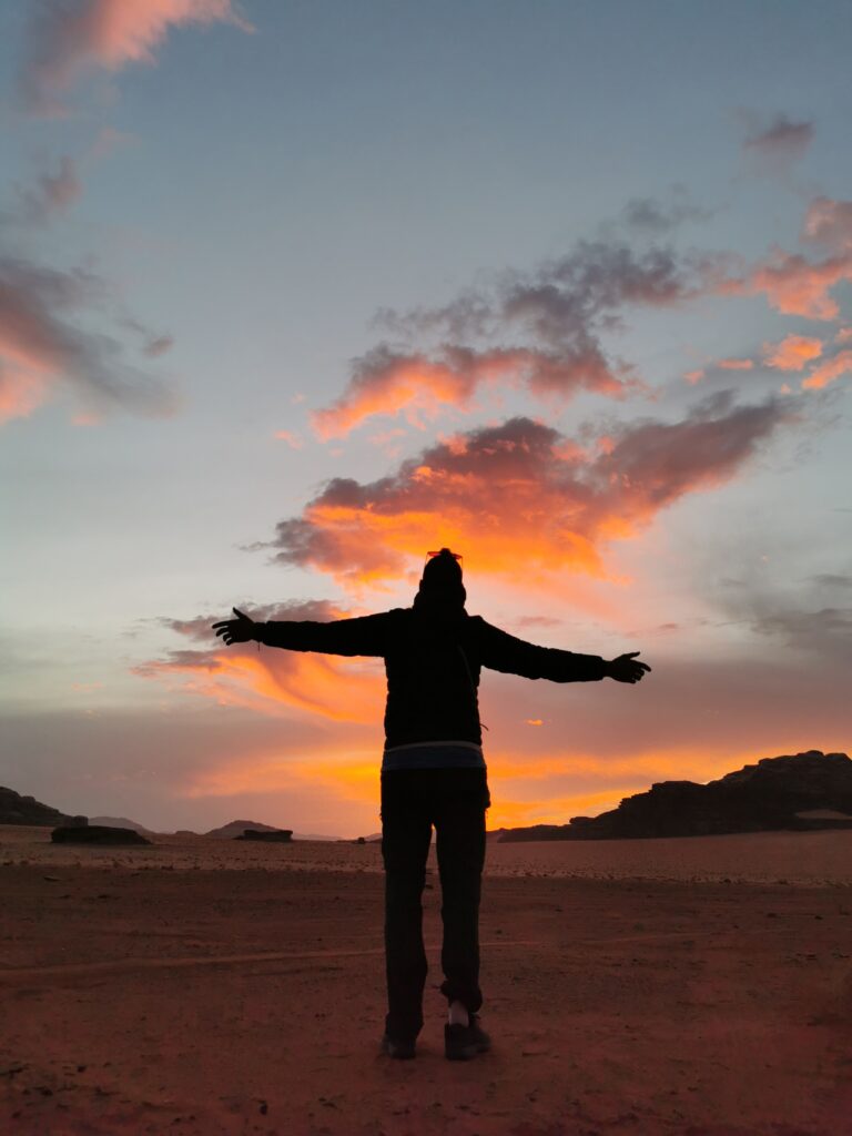 Ce matin nous prenons un bus en direction du Sud du pays où nous attendent les incroyables paysages désertiques/montagneux Du Wadi Rum. Cela fait des années que je rêve de voir ce lieu de mes propres yeux et je n’ai pas été déçu! Une plaine sablonneuse de couleur rouge Mars à 1000m d’altitude d’où s’érigent vers le ciel de nombreuses montagnes (Jbel) jusqu’à 1854m. Et dans ces montagnes on trouve des canyons asséchés, des arches, des falaises vertigineuses, des formes torturées par l’eau (dans le passé) et le vent et des couleurs variées dues aux différentes strates géologiques. Des campements accueillent les touristes, des vieilles jeeps rafistolées et des dromadaires parcourent ce paysage martien et quelques plantes survivent tant bien que mal dans cet univers hostile! Le soir nous mangeons un repas cuit à l’étouffée sous le sable. Et c’est Abdullah qui nous emmène pour un Full Day Trip dans ce décor, qui prend soin de nous, nous sourit, nous cuisine un bon déjeuner sur un feu improvisé, nous prépare du thé et nous rappelle sans cesse “Take your time!”. Le coucher de soleil est flamboyant puis la nuit étincelle d’étoiles alors que le désert s’illumine sous une lune bientôt pleine…