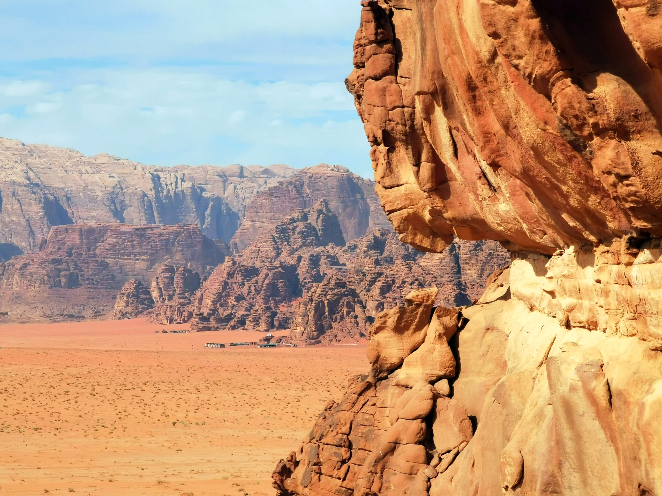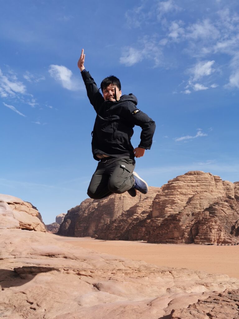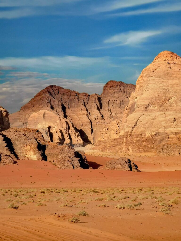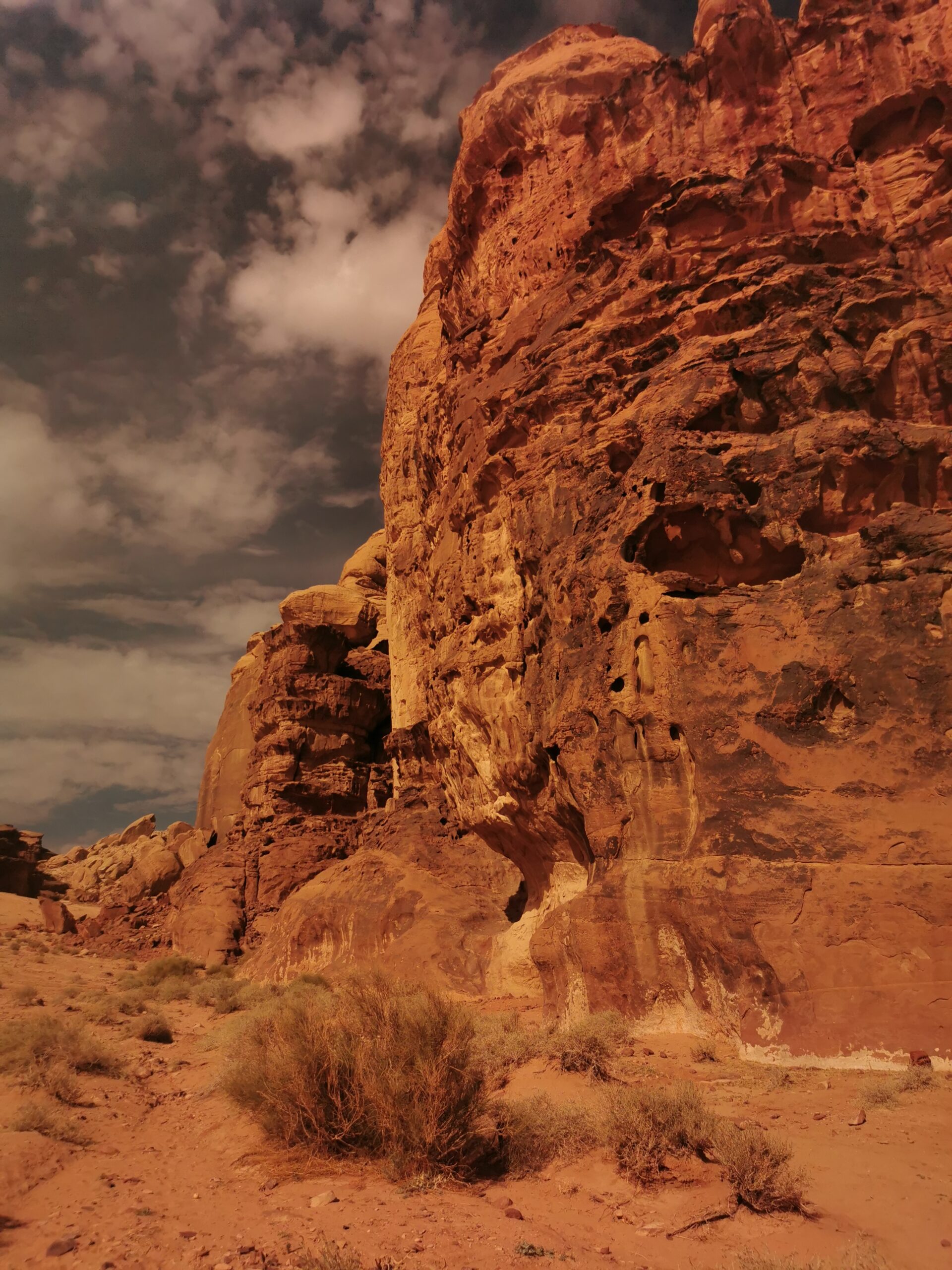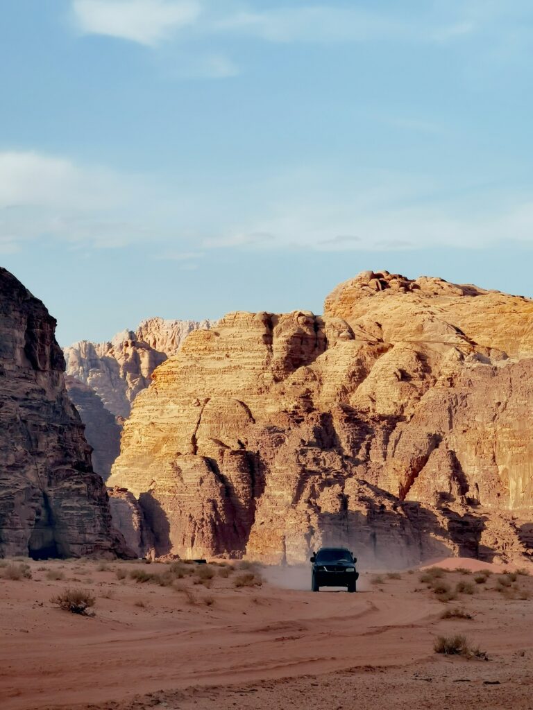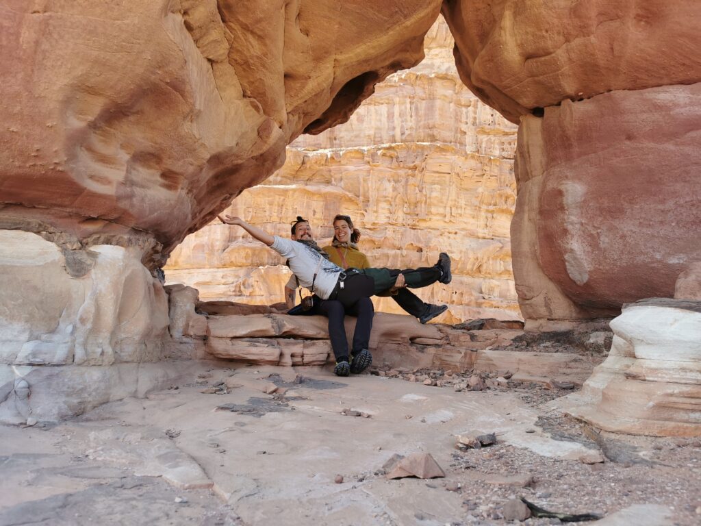 Ce matin nous prenons un bus en direction du Sud du pays où nous attendent les incroyables paysages désertiques/montagneux Du Wadi Rum. Cela fait des années que je rêve de voir ce lieu de mes propres yeux et je n’ai pas été déçu! Une plaine sablonneuse de couleur rouge Mars à 1000m d’altitude d’où s’érigent vers le ciel de nombreuses montagnes (Jbel) jusqu’à 1854m. Et dans ces montagnes on trouve des canyons asséchés, des arches, des falaises vertigineuses, des formes torturées par l’eau (dans le passé) et le vent et des couleurs variées dues aux différentes strates géologiques. Des campements accueillent les touristes, des vieilles jeeps rafistolées et des dromadaires parcourent ce paysage martien et quelques plantes survivent tant bien que mal dans cet univers hostile! Le soir nous mangeons un repas cuit à l’étouffée sous le sable. Et c’est Abdullah qui nous emmène pour un Full Day Trip dans ce décor, qui prend soin de nous, nous sourit, nous cuisine un bon déjeuner sur un feu improvisé, nous prépare du thé et nous rappelle sans cesse “Take your time!”. Le coucher de soleil est flamboyant puis la nuit étincelle d’étoiles alors que le désert s’illumine sous une lune bientôt pleine…