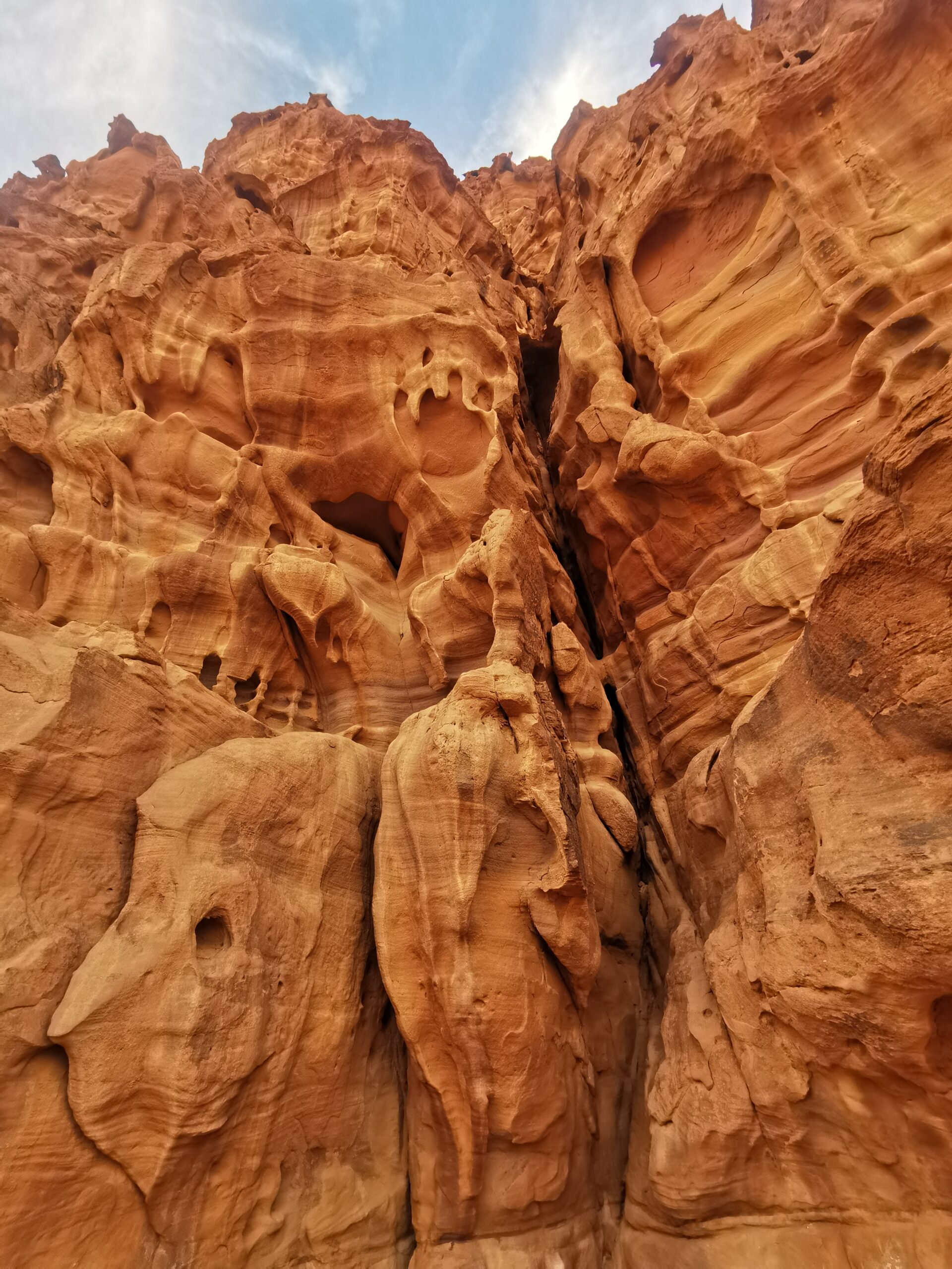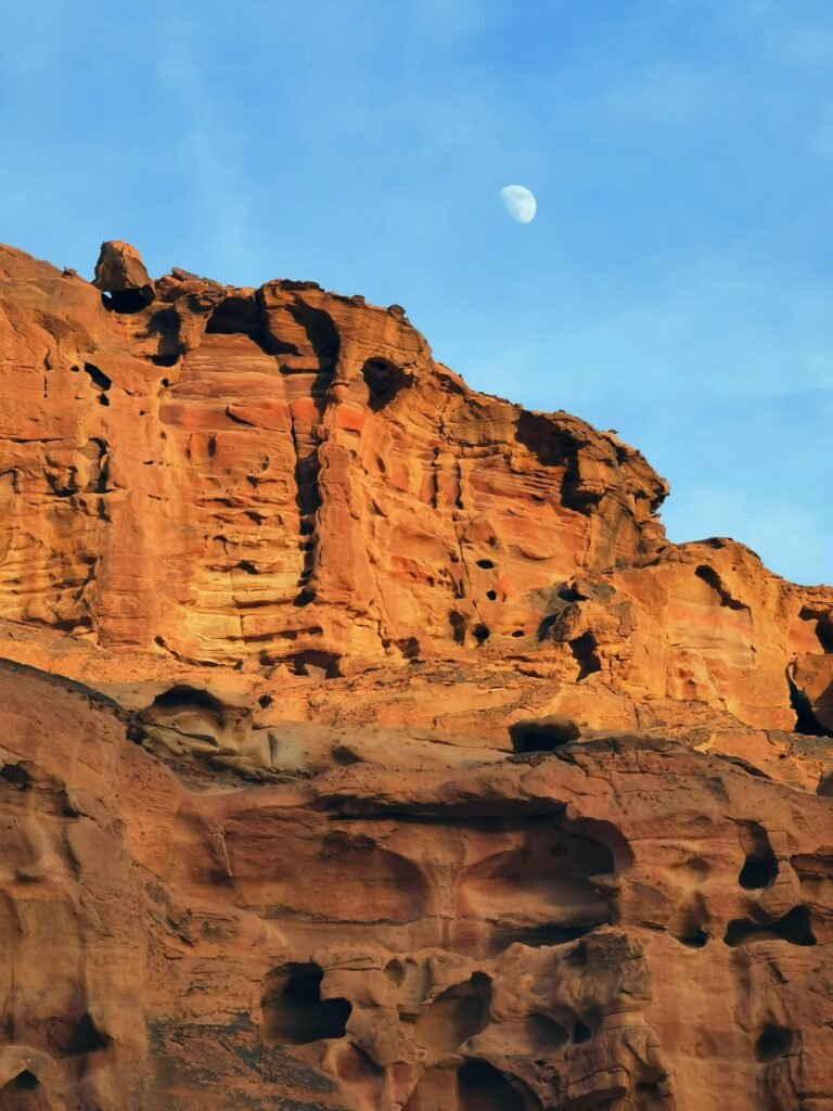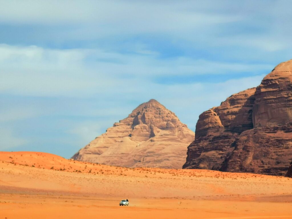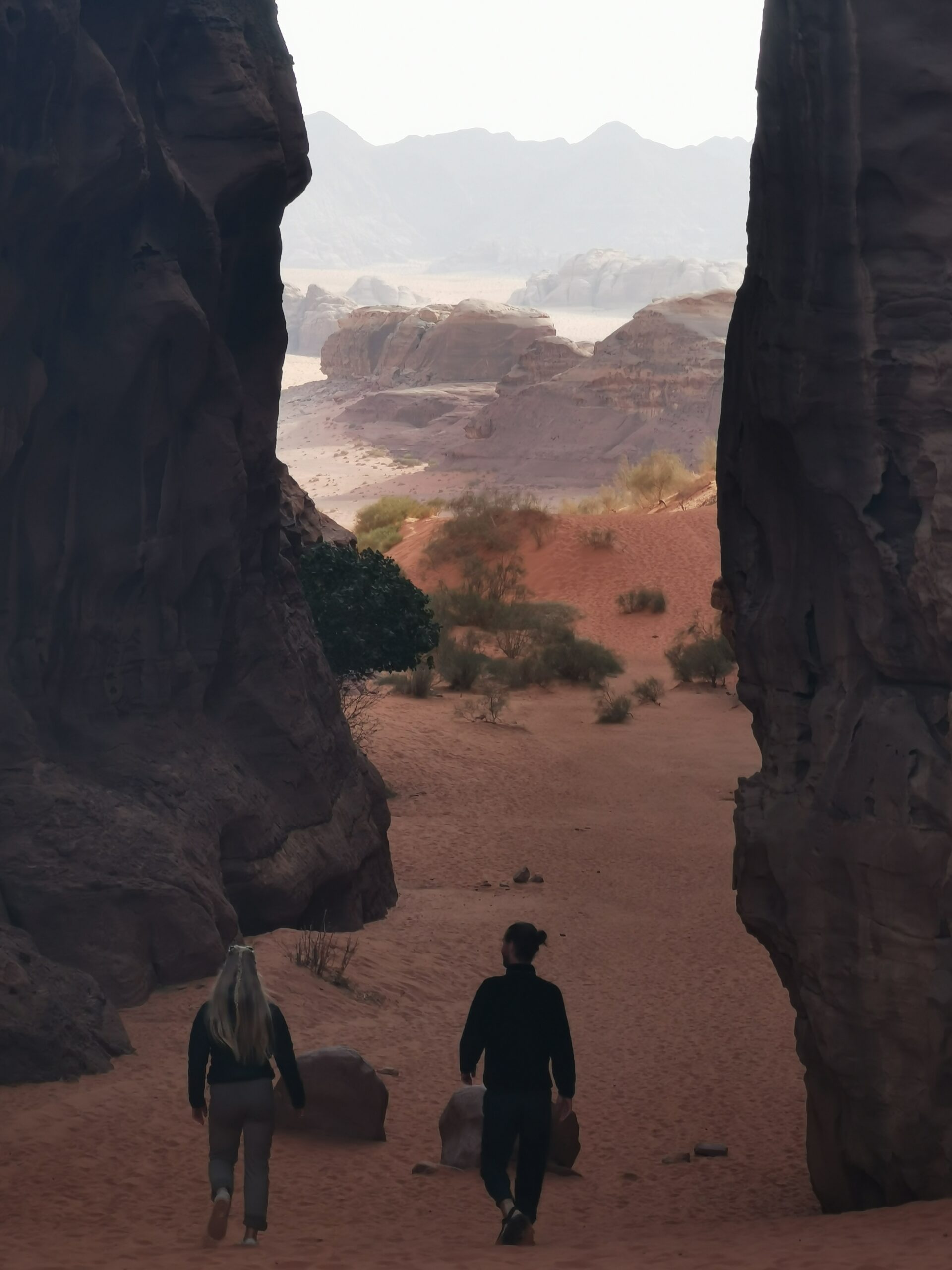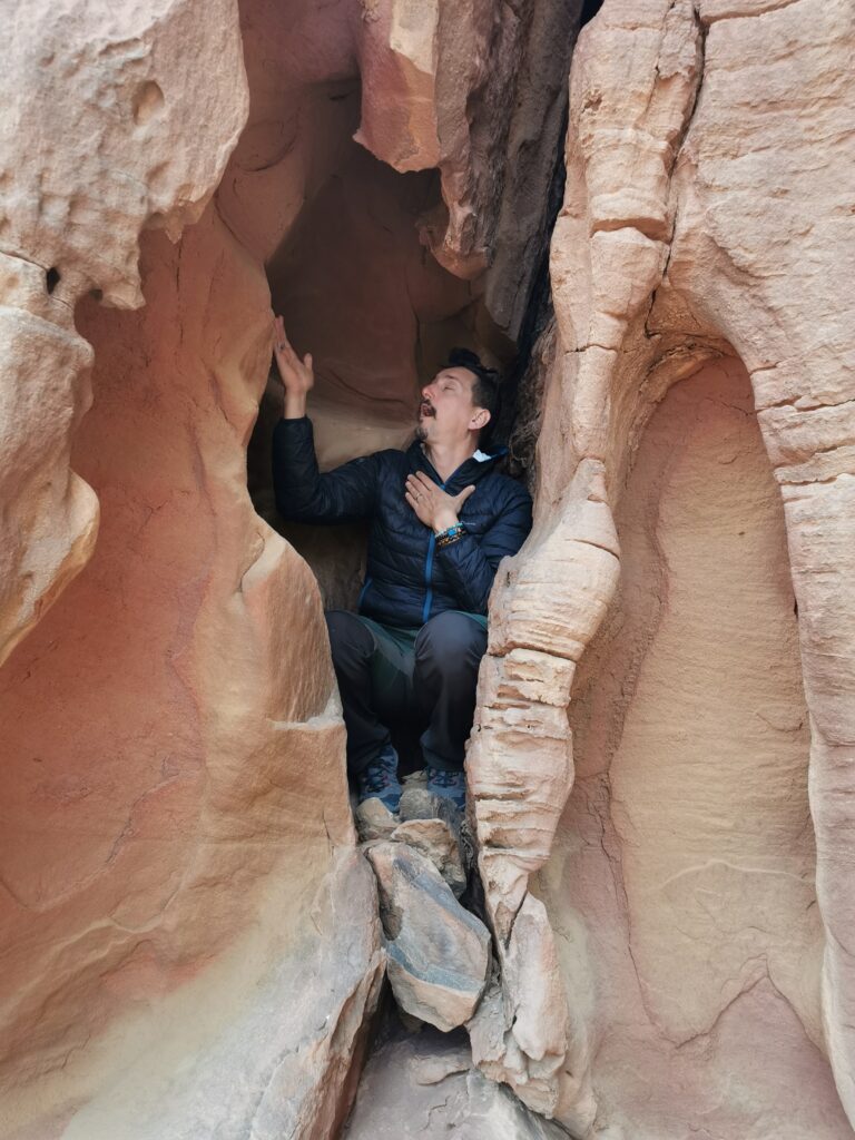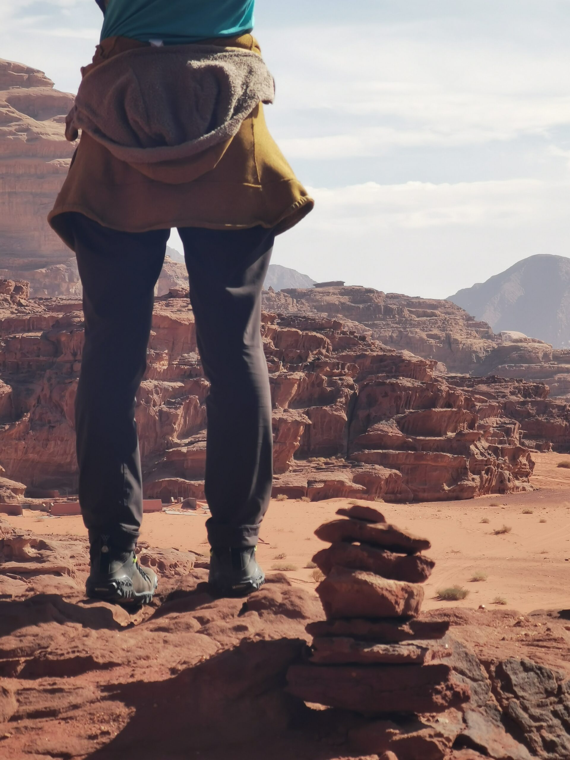 Ce matin nous prenons un bus en direction du Sud du pays où nous attendent les incroyables paysages désertiques/montagneux Du Wadi Rum. Cela fait des années que je rêve de voir ce lieu de mes propres yeux et je n’ai pas été déçu! Une plaine sablonneuse de couleur rouge Mars à 1000m d’altitude d’où s’érigent vers le ciel de nombreuses montagnes (Jbel) jusqu’à 1854m. Et dans ces montagnes on trouve des canyons asséchés, des arches, des falaises vertigineuses, des formes torturées par l’eau (dans le passé) et le vent et des couleurs variées dues aux différentes strates géologiques. Des campements accueillent les touristes, des vieilles jeeps rafistolées et des dromadaires parcourent ce paysage martien et quelques plantes survivent tant bien que mal dans cet univers hostile! Le soir nous mangeons un repas cuit à l’étouffée sous le sable. Et c’est Abdullah qui nous emmène pour un Full Day Trip dans ce décor, qui prend soin de nous, nous sourit, nous cuisine un bon déjeuner sur un feu improvisé, nous prépare du thé et nous rappelle sans cesse “Take your time!”. Le coucher de soleil est flamboyant puis la nuit étincelle d’étoiles alors que le désert s’illumine sous une lune bientôt pleine…