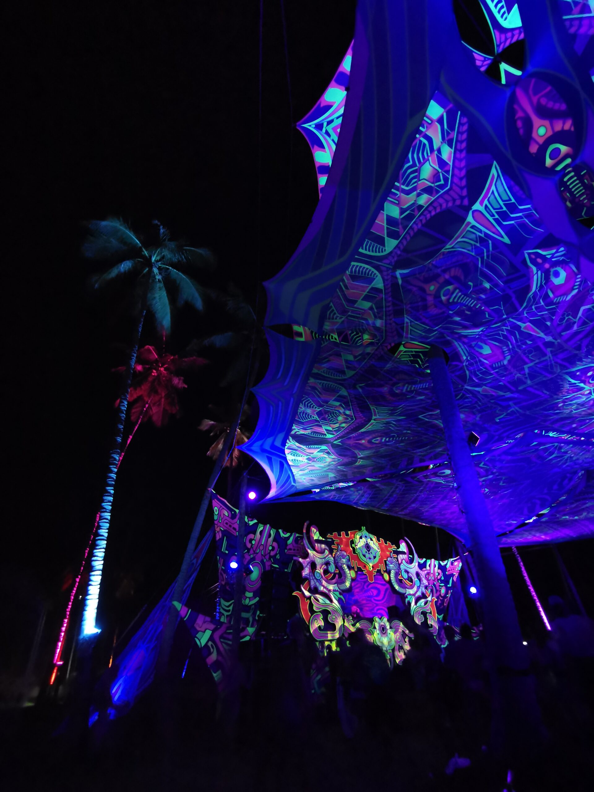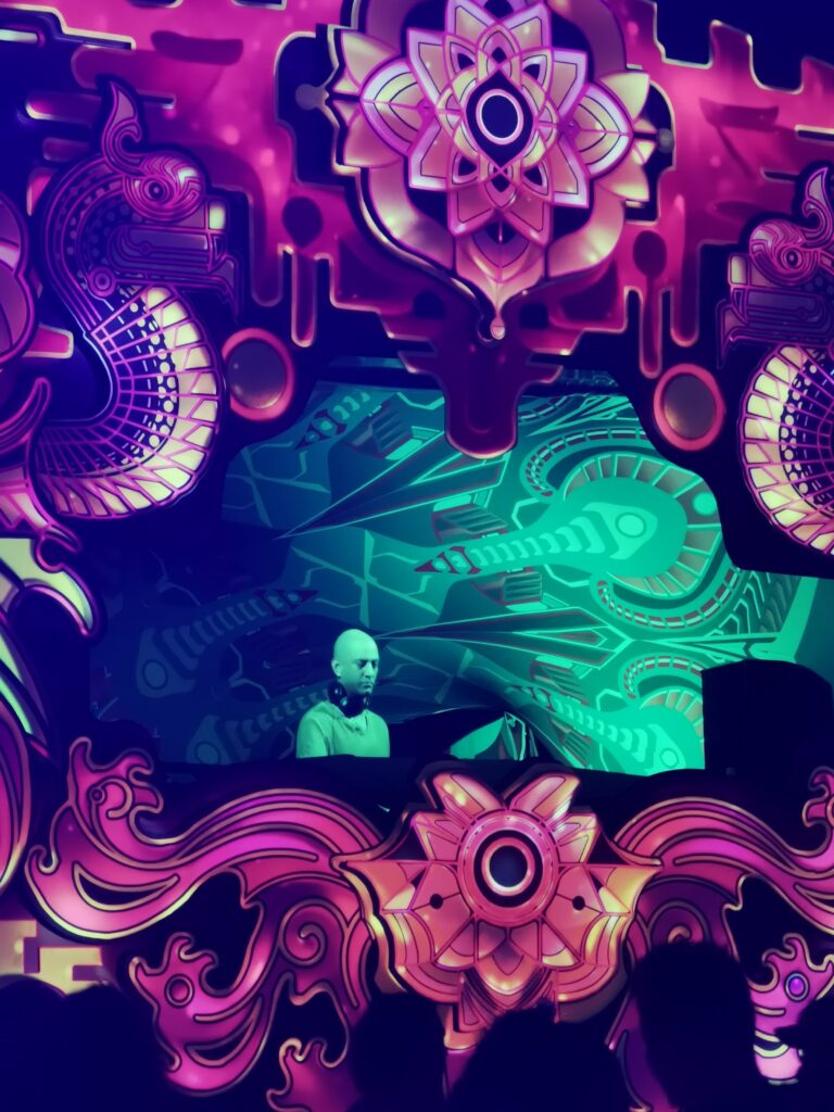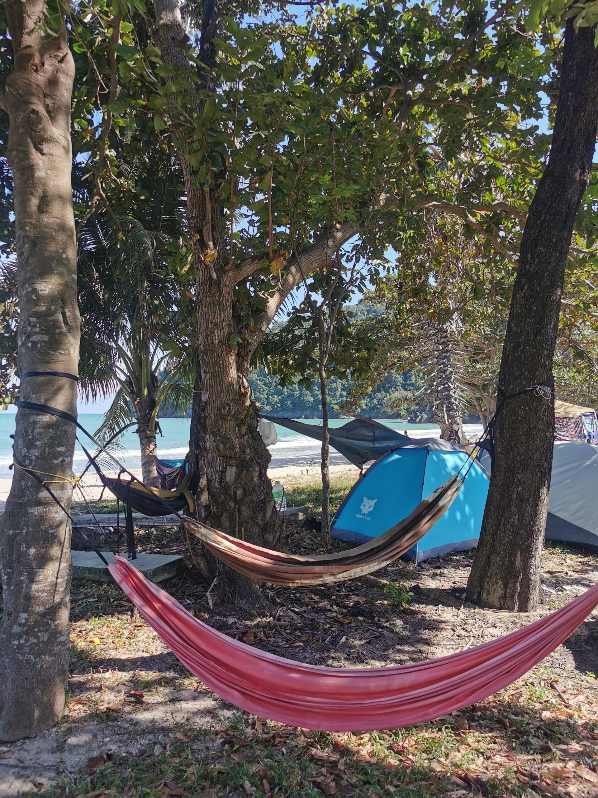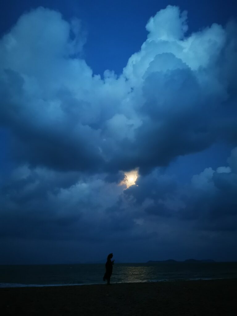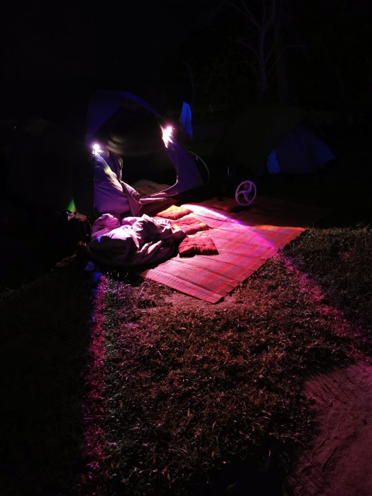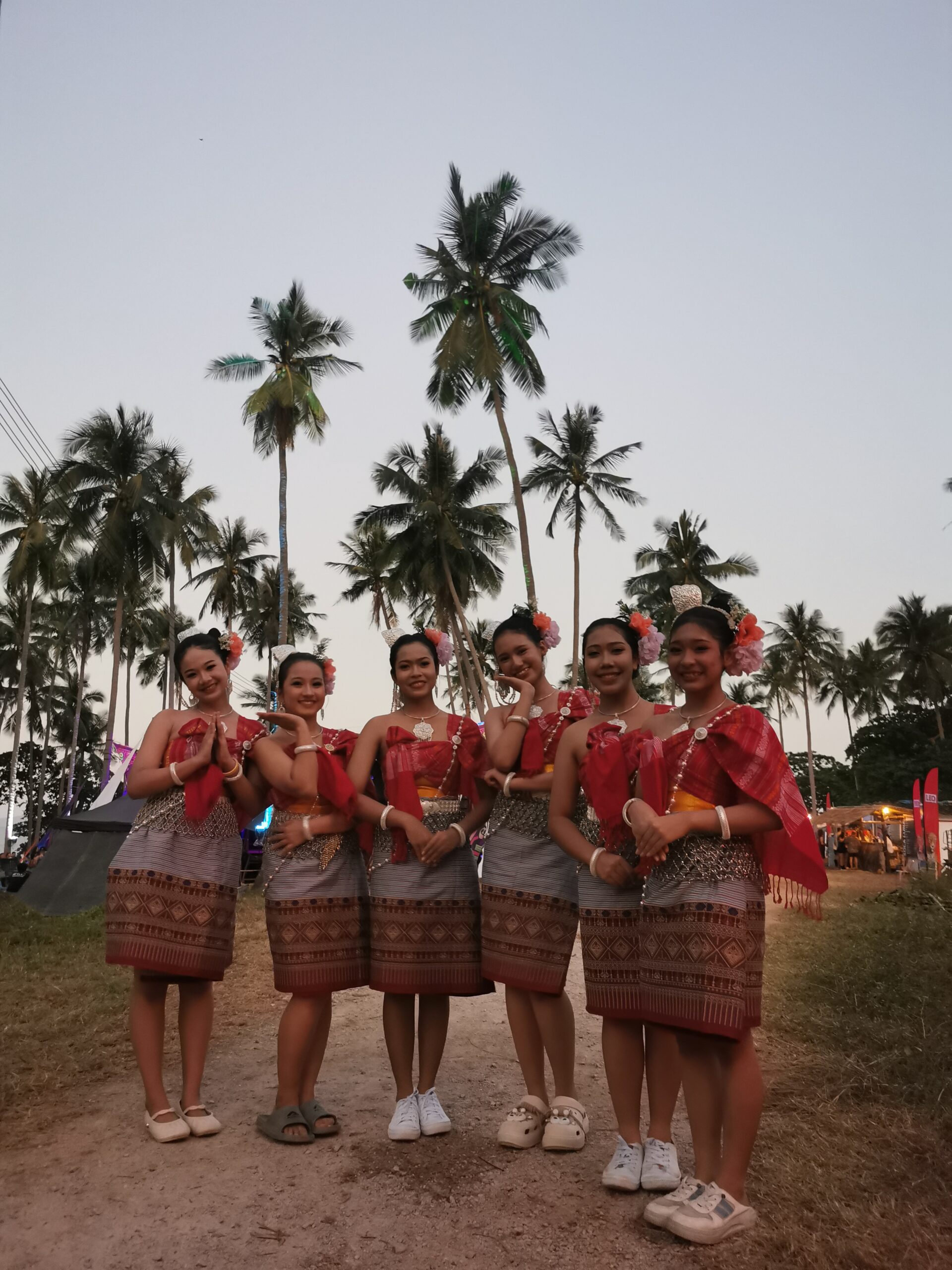 Je la retrouve donc le lendemain ainsi que Sara, une maroco germano irlandaise qu’elle avait rencontrée quelques semaines plus tôt et Nico un italien que Sara a rencontré la veille. Et on y a aussi rencontré notre voisin de campement Fabio (don’t j’ai oublié l’origine exacte mais d’Amérique du Sud). Nous y avons passé une semaine magique de danse, de plage, de chill, de rigolades, de partage d’expérience de voyage et de bonnes bouffes au petit resto au bout de la plage. Ce restaurant familial était notre petit havre de paix loin des basses chaque soir pour le dîner. Le site du festival est très beau avec des palmiers, la plage turquoise et la scène psychédélique. La plage était jonchée de détritus et Je pense qu’au moins la moitié des festivaliers, un moment où un autre, à pris un sac poubelle pour nettoyer un bout de la plage. À la fin de la semaine elle était presque nickel! Puis la grande marée de la pleine Lune à tout recouvert de plastique à nouveau… On a bien déconné avec la Planète… Pour ne pas finir sur une note négative, cette semaine était vraiment très chouette et m’a donné plein d’énergie pour la suite! Et dormir en tente sans climatisation pendant une semaine m’a permis de réellement m’habituer à la chaleur! Maintenant en route pour Bangkok où je rejoins ma sœur Sandra, mon beau-frère Loran et mon neveu Barnabé pour quelques jours!