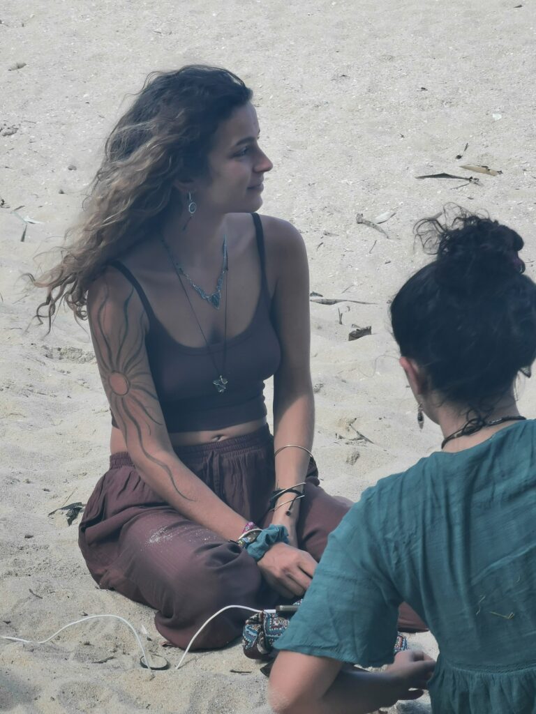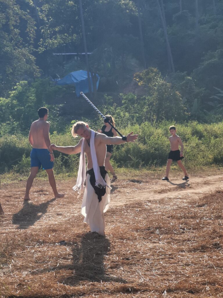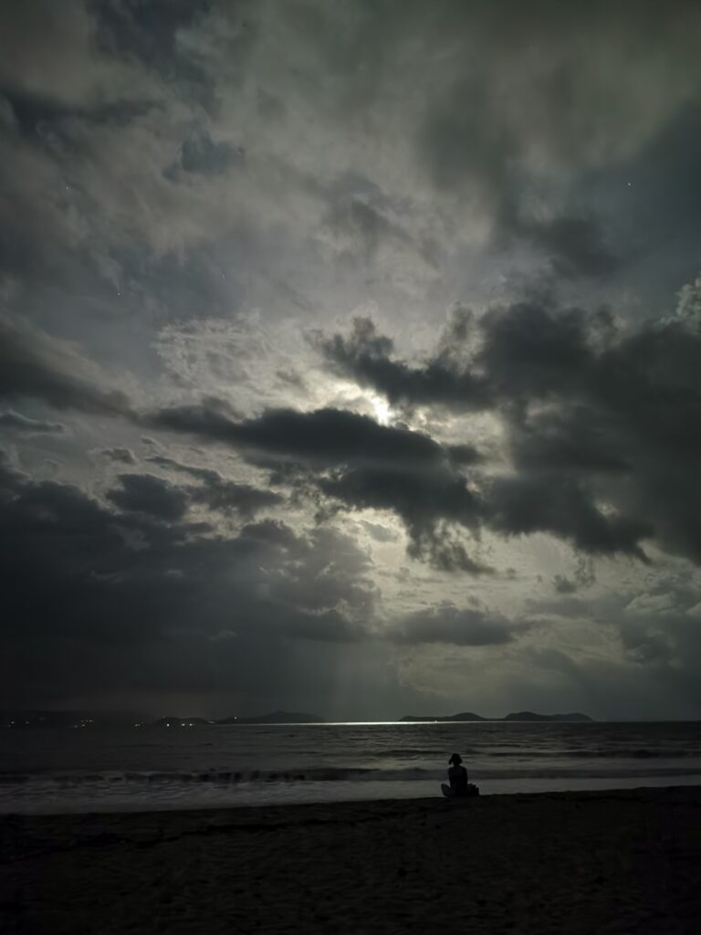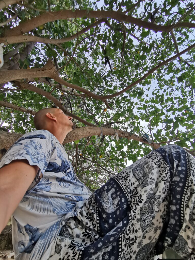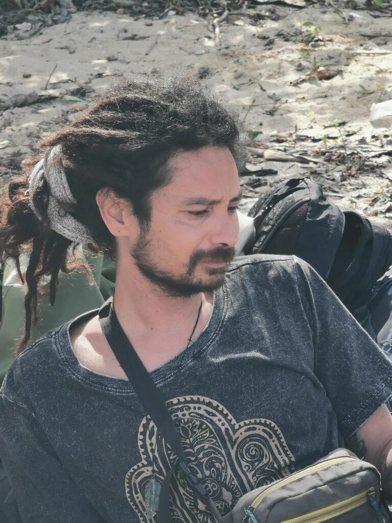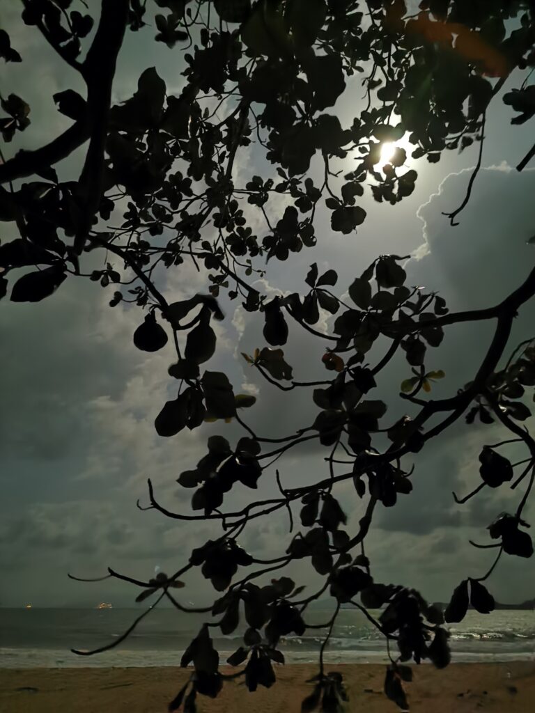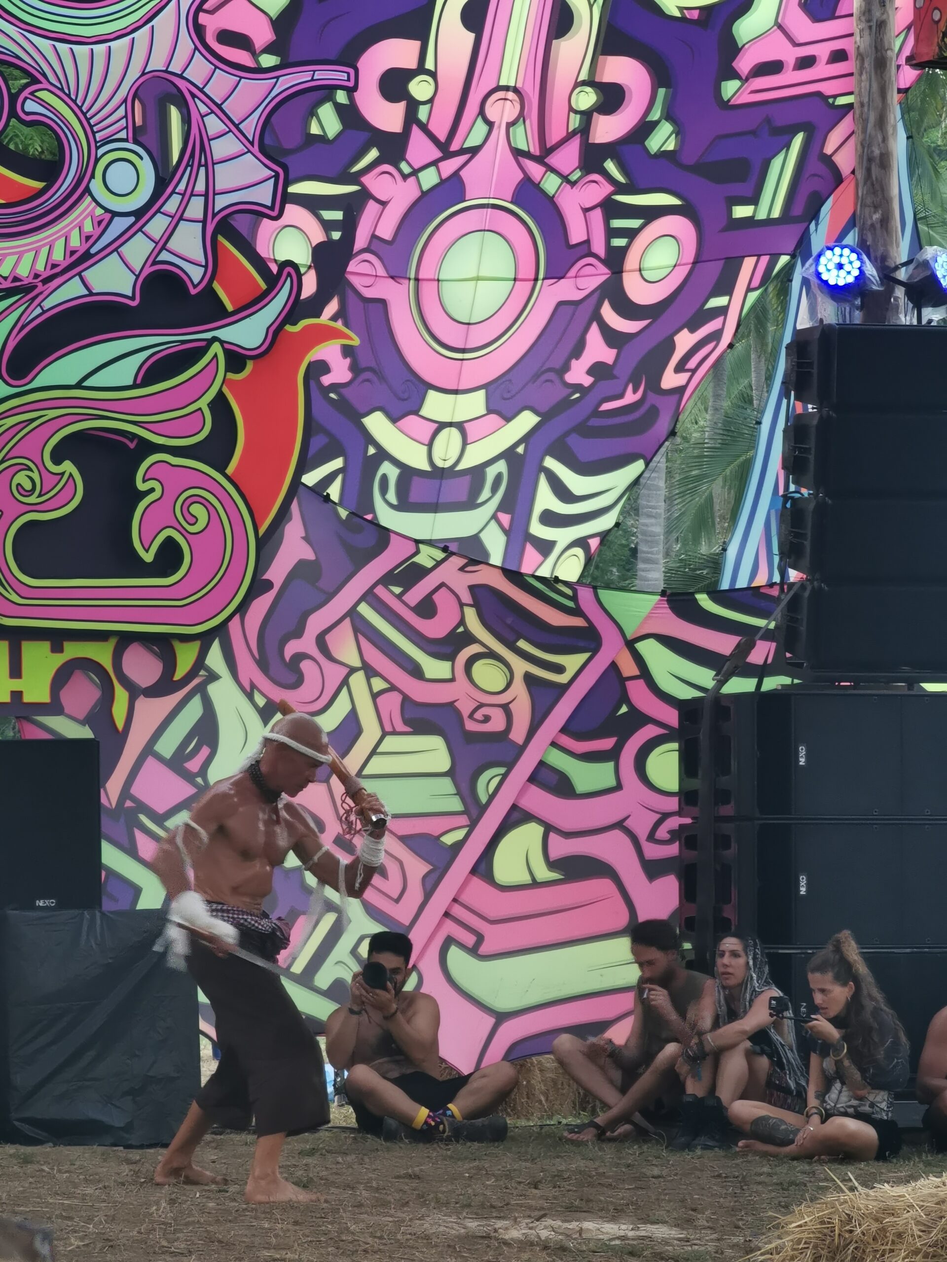 Je la retrouve donc le lendemain ainsi que Sara, une maroco germano irlandaise qu’elle avait rencontrée quelques semaines plus tôt et Nico un italien que Sara a rencontré la veille. Et on y a aussi rencontré notre voisin de campement Fabio (don’t j’ai oublié l’origine exacte mais d’Amérique du Sud). Nous y avons passé une semaine magique de danse, de plage, de chill, de rigolades, de partage d’expérience de voyage et de bonnes bouffes au petit resto au bout de la plage. Ce restaurant familial était notre petit havre de paix loin des basses chaque soir pour le dîner. Le site du festival est très beau avec des palmiers, la plage turquoise et la scène psychédélique. La plage était jonchée de détritus et Je pense qu’au moins la moitié des festivaliers, un moment où un autre, à pris un sac poubelle pour nettoyer un bout de la plage. À la fin de la semaine elle était presque nickel! Puis la grande marée de la pleine Lune à tout recouvert de plastique à nouveau… On a bien déconné avec la Planète… Pour ne pas finir sur une note négative, cette semaine était vraiment très chouette et m’a donné plein d’énergie pour la suite! Et dormir en tente sans climatisation pendant une semaine m’a permis de réellement m’habituer à la chaleur! Maintenant en route pour Bangkok où je rejoins ma sœur Sandra, mon beau-frère Loran et mon neveu Barnabé pour quelques jours!