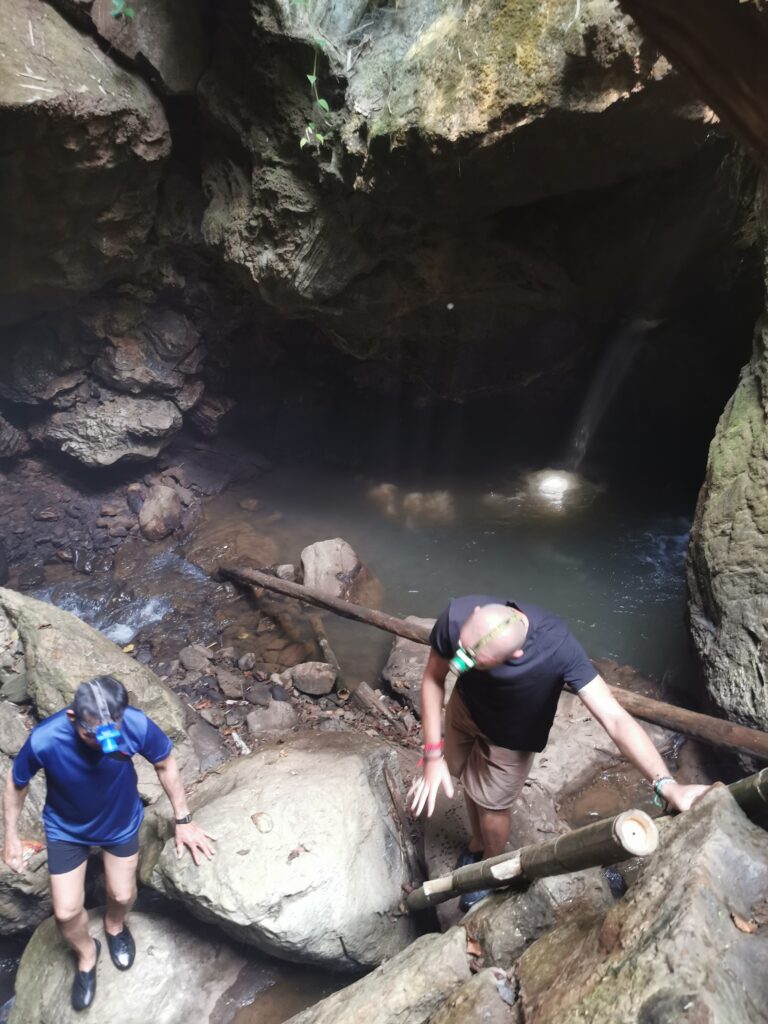 Avec Arnaud, petit Roadtrip de 2 jours près de la frontière Birmane. Nous avons trouvé un bungalow un peu miteux mais avec une vue absolument incroyable (et la Lune qui éclaire tout ça d’une teinte bleutée la nuit) et sommes allés explorer Diamond Cave. C’était la vraie aventure! Avec le guide nous avons marché tous les trois en caleçon dans le noir et la flotte (eau jusqu’au torse parfois!). Nous n’y avons croisé personne et avons pu observer des mini chauve-souris, des formations de stalagmites et stalagtites incroyables et des piscines naturelles remplies de boue glissante. C’était vraiment génial (bien que ça aurait déplu à beaucoup de gens)!!!