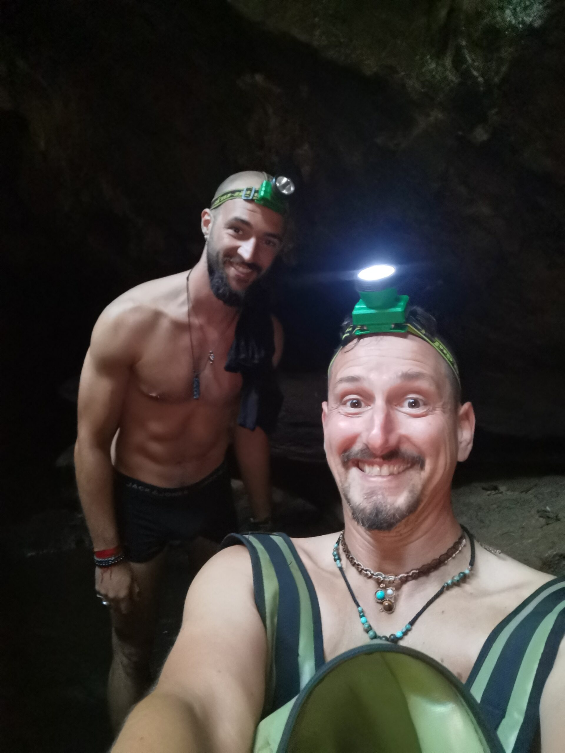 Avec Arnaud, petit Roadtrip de 2 jours près de la frontière Birmane. Nous avons trouvé un bungalow un peu miteux mais avec une vue absolument incroyable (et la Lune qui éclaire tout ça d’une teinte bleutée la nuit) et sommes allés explorer Diamond Cave. C’était la vraie aventure! Avec le guide nous avons marché tous les trois en caleçon dans le noir et la flotte (eau jusqu’au torse parfois!). Nous n’y avons croisé personne et avons pu observer des mini chauve-souris, des formations de stalagmites et stalagtites incroyables et des piscines naturelles remplies de boue glissante. C’était vraiment génial (bien que ça aurait déplu à beaucoup de gens)!!!
