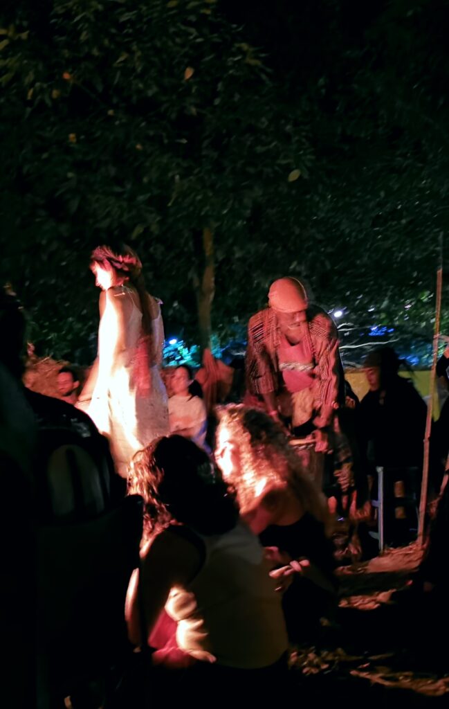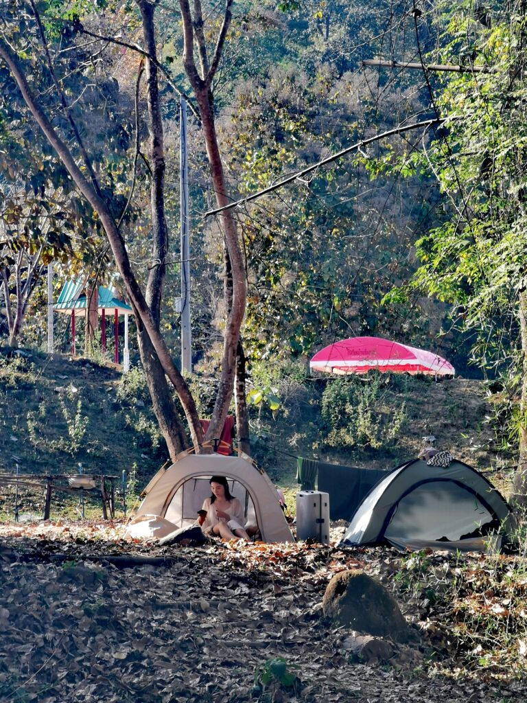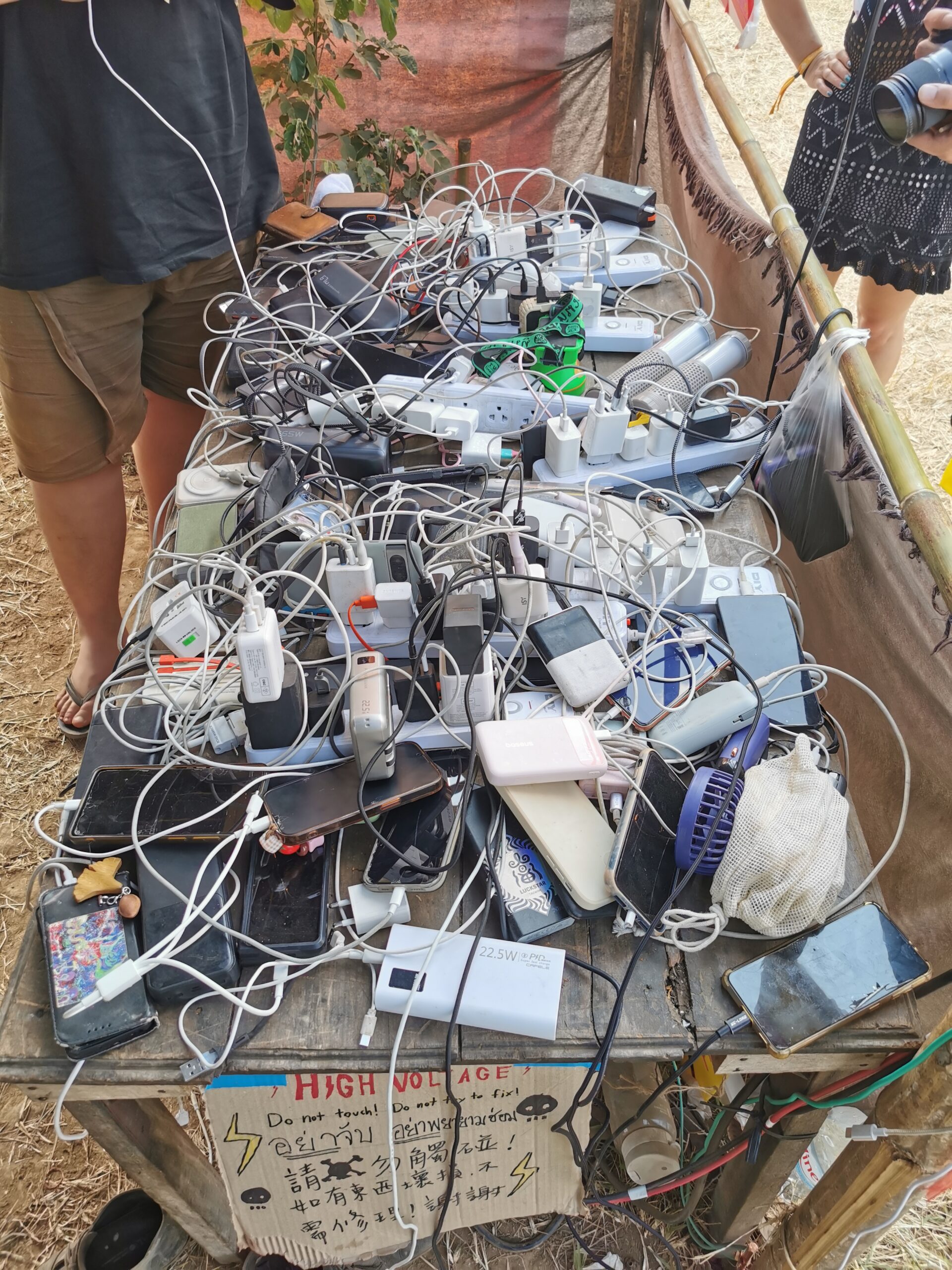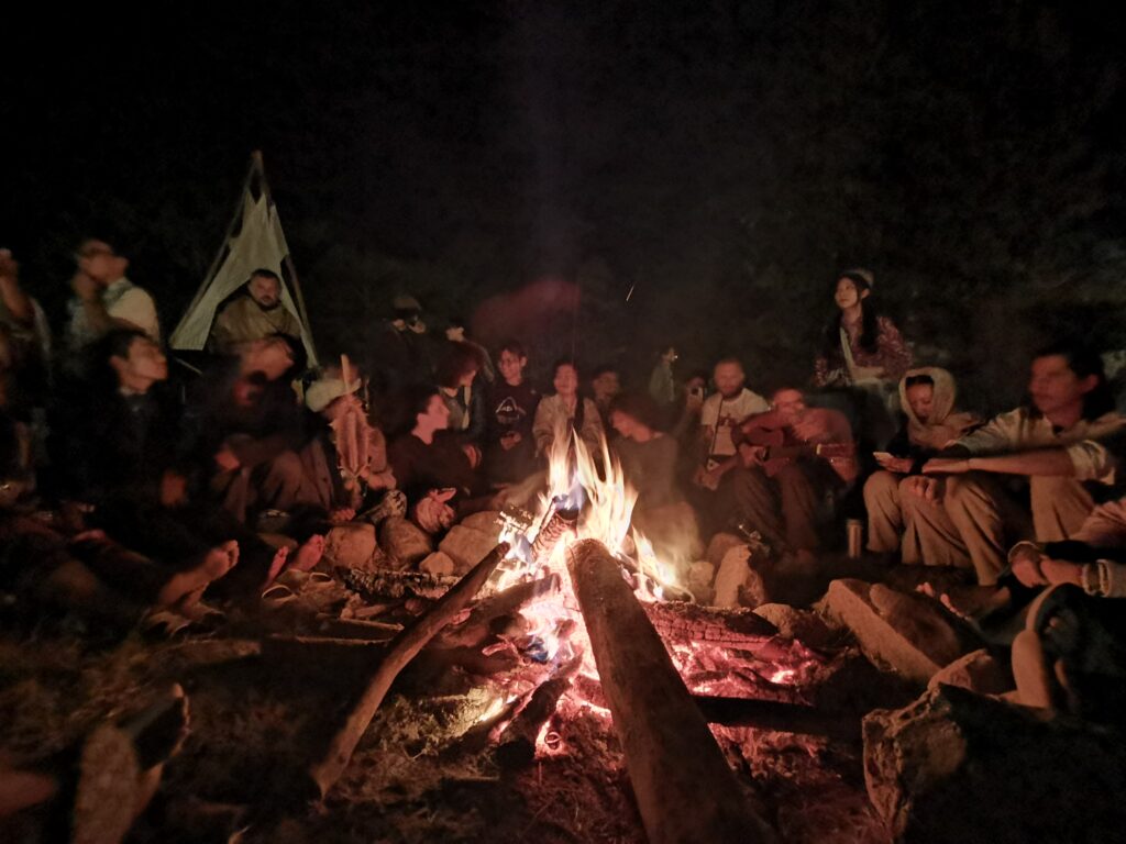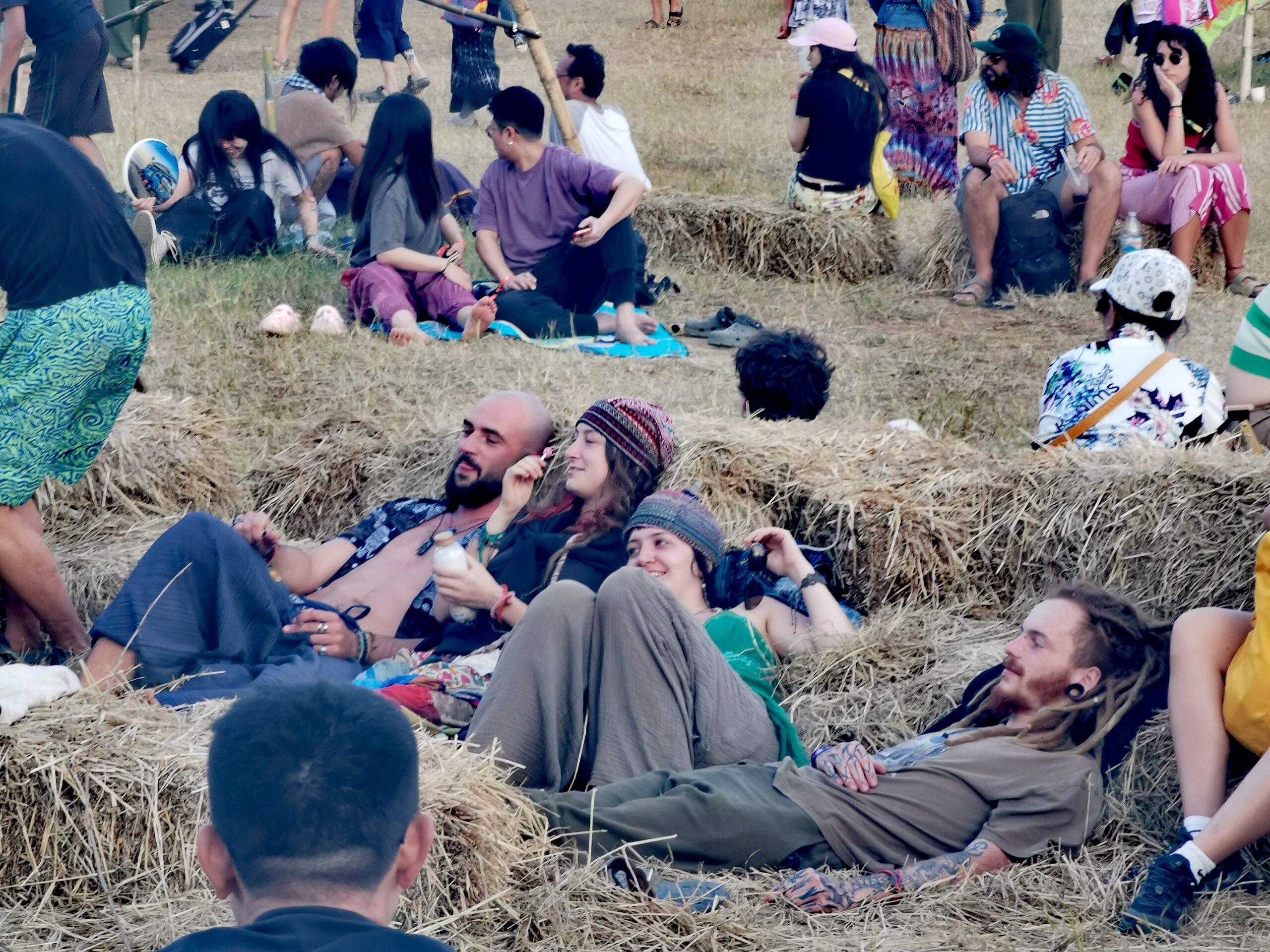 Après avoir hésité un long moment, je suis RAVI d’être resté un peu plus longtemps en Thaïlande pour assister à ce festival merveilleux!!!! Festival organisé depuis 2010 par des hippies japonais sur un site vraiment magnifique dans les montagnes de Chiang Dao. Avec Arnaud et Laurence nous rencontrons Elisa et Mattheo, un couple de jeunes français trop mignons avec qui nous installons un abris en feuilles de bananes pour nous protéger du soleil et avec qui nous passons les cinq premiers jours du festival. Ces premiers jours nous profitons à fond des concerts le soir (que de la musique instrumentale, pas d’électro…), des ateliers en tout genre (thérapie sonore, yoga méditation, tantra, danse…) et j’organise des ateliers “Créez votre propre bijou” qui fonctionnent super bien. Et je refait du jonglage de feu pour la première fois depuis plus de quinze ans!!!! Le cinquième jour c’est pause musicale et c’est l’occasion idéale pour nous prélasser au bord de la rivière à l’ombre des arbres (tous plus beaux les uns que les autres!), pour nous baigner dans les sources chaudes et pour nous reposer un peu. Et les cinq derniers jours se passent sans embûche mais avec une énergie plus calme. Après avoir discuté avec des DJ en dehors du festival, Arnaud nous fait un set électro d’une heure et demi sur lequel je me régale (ça m’a un peu manqué de taper du pied…). Et c’est là que nous rencontrons Orlane et Angie, un couple de parisiennes adorables avec qui le courant passe tout de suite! C’est grâce à elles que nous rencontrons ensuite Minh, une nana en or, son fils Alex et sa chèrie Bella. Minh a 75 ans mais elle en paraît à peine 55, elle a une pêche d’enfer et nous raconte sa vie pleine de rebondissements et d’aventure, une vraie inspiration pour le futur!!!!! Si ce festival durait un mois je pense que je n’en bougerais pas!!!!