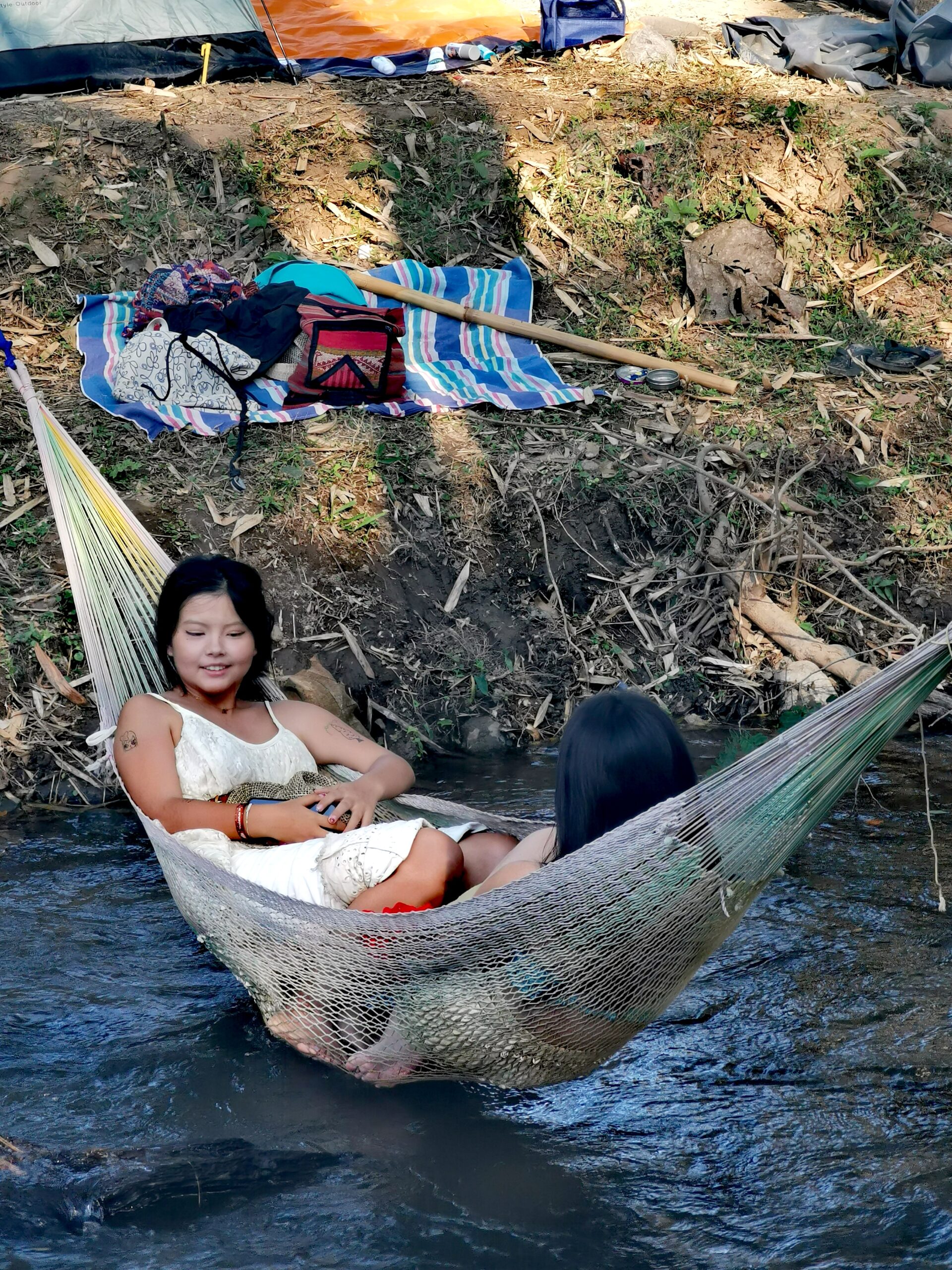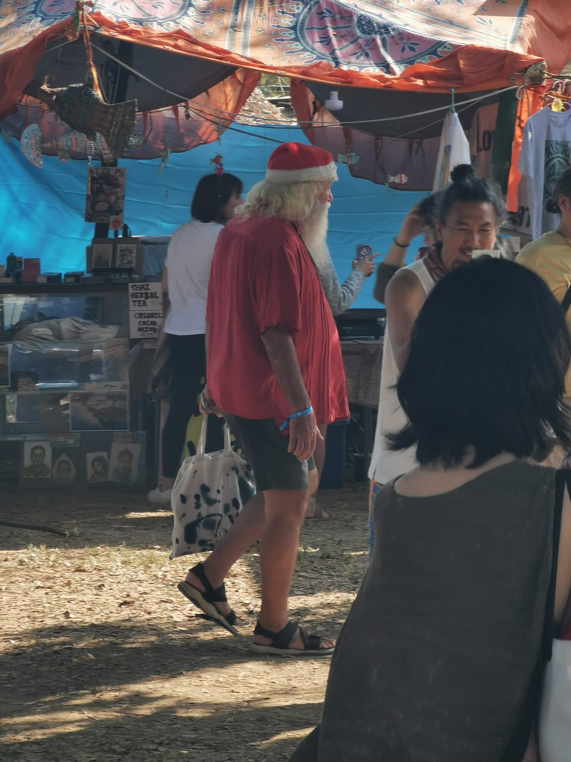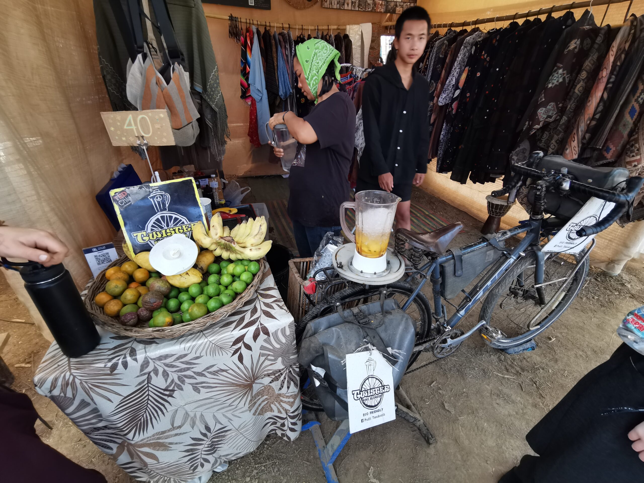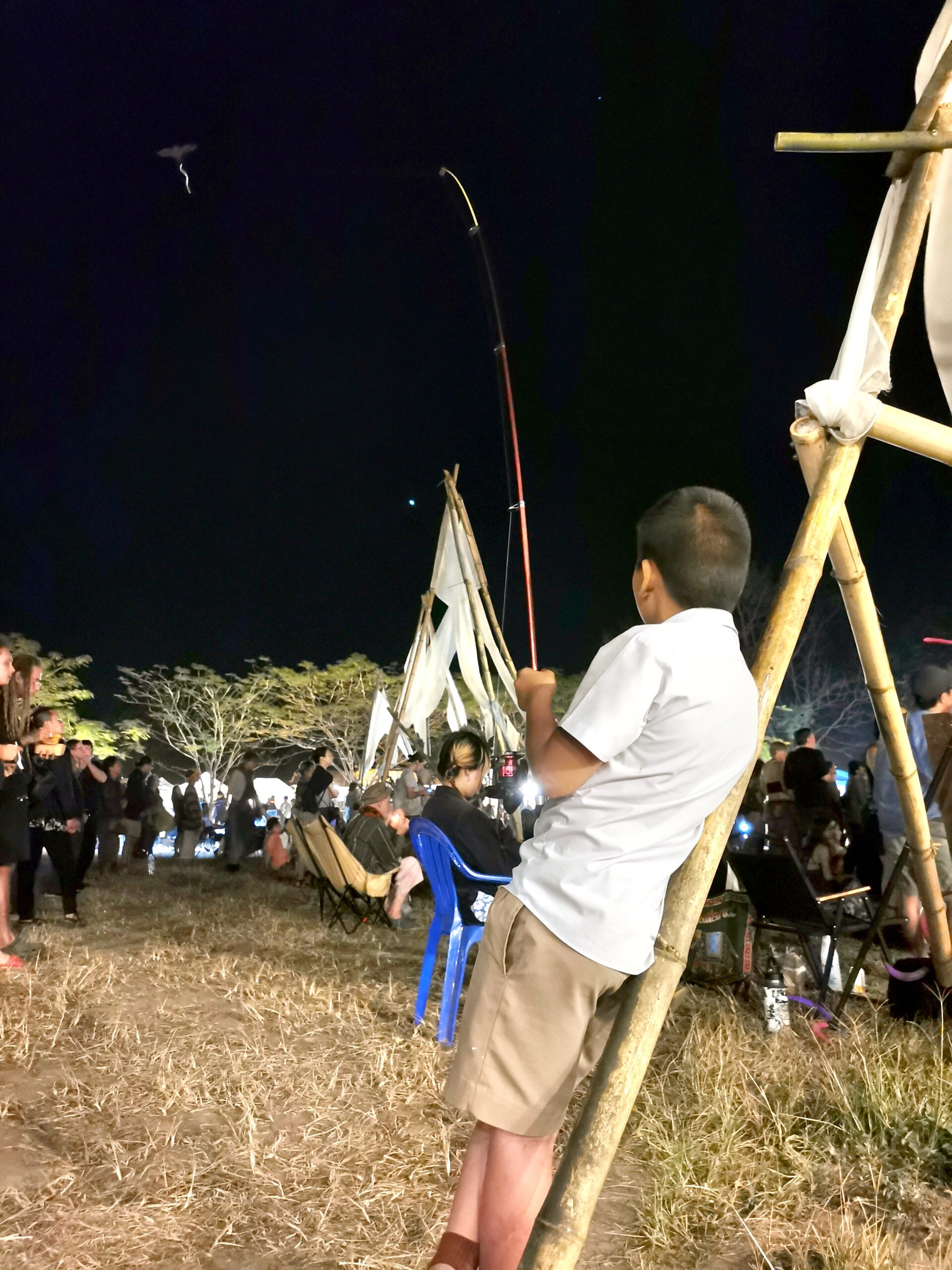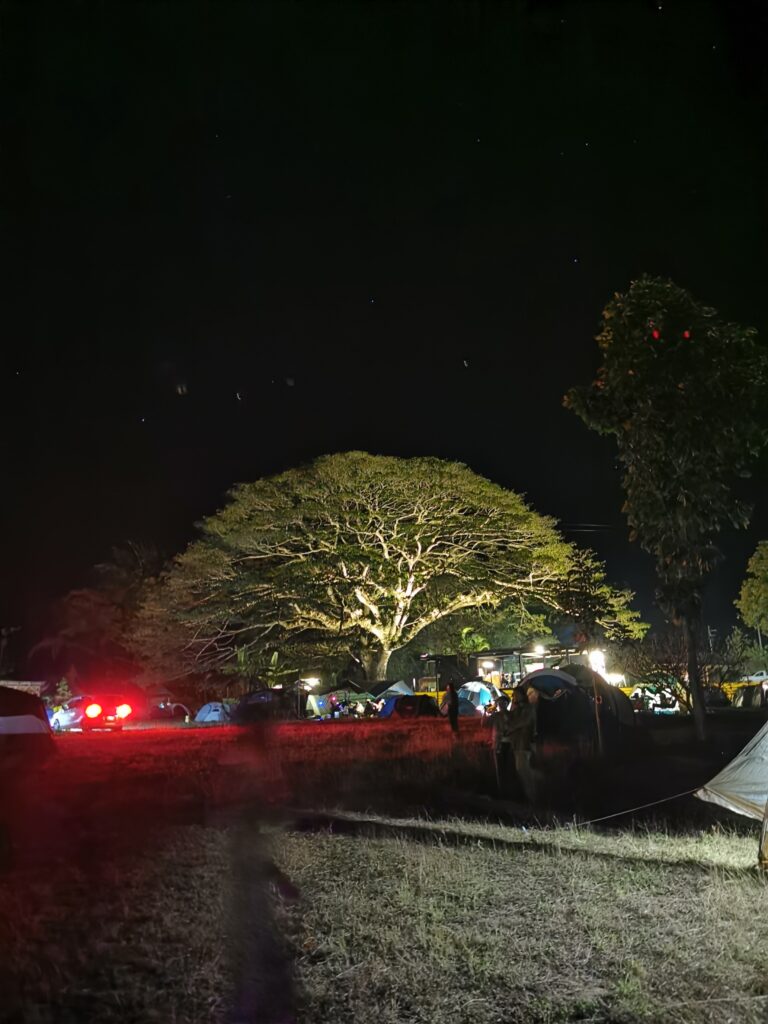 Après avoir hésité un long moment, je suis RAVI d’être resté un peu plus longtemps en Thaïlande pour assister à ce festival merveilleux!!!! Festival organisé depuis 2010 par des hippies japonais sur un site vraiment magnifique dans les montagnes de Chiang Dao. Avec Arnaud et Laurence nous rencontrons Elisa et Mattheo, un couple de jeunes français trop mignons avec qui nous installons un abris en feuilles de bananes pour nous protéger du soleil et avec qui nous passons les cinq premiers jours du festival. Ces premiers jours nous profitons à fond des concerts le soir (que de la musique instrumentale, pas d’électro…), des ateliers en tout genre (thérapie sonore, yoga méditation, tantra, danse…) et j’organise des ateliers “Créez votre propre bijou” qui fonctionnent super bien. Et je refait du jonglage de feu pour la première fois depuis plus de quinze ans!!!! Le cinquième jour c’est pause musicale et c’est l’occasion idéale pour nous prélasser au bord de la rivière à l’ombre des arbres (tous plus beaux les uns que les autres!), pour nous baigner dans les sources chaudes et pour nous reposer un peu. Et les cinq derniers jours se passent sans embûche mais avec une énergie plus calme. Après avoir discuté avec des DJ en dehors du festival, Arnaud nous fait un set électro d’une heure et demi sur lequel je me régale (ça m’a un peu manqué de taper du pied…). Et c’est là que nous rencontrons Orlane et Angie, un couple de parisiennes adorables avec qui le courant passe tout de suite! C’est grâce à elles que nous rencontrons ensuite Minh, une nana en or, son fils Alex et sa chèrie Bella. Minh a 75 ans mais elle en paraît à peine 55, elle a une pêche d’enfer et nous raconte sa vie pleine de rebondissements et d’aventure, une vraie inspiration pour le futur!!!!! Si ce festival durait un mois je pense que je n’en bougerais pas!!!!