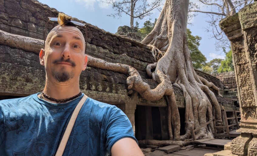 Me voici au Cambodge pour visiter ce site incroyable que je rêve de voir depuis fort longtemps! Et je ne suis pas déçu, c’est encore plus incroyable que je ne le pensais! Il y a des temples PARTOUT, certains en bon état et d’autres de pures ruines, certains recouverts d’arbres et d’autres abritant des singes, certains remplis de touristes et d’autres totalement oubliés des foules… C’est beeeeaaaauuuuuu! Mais il fait tellement chaaaaaaauuuuuuuuud!!!!! Je commence à vraiment souffrir de la chaleur, je passe mes journées à l’ombre, sur mon scooter ( il y a de l’air tant que je roule) et au cinema climatisé… 2 ou 3 heures de visite de temples par jour avant de trop en baver. Et la nuit c’est pas beaucoup mieux et en plus les moustiques s’y mettent… Donc c’est merveilleux comme endroit mais j’ai tellement hâte de retrouver la fraîcheur de l’Himalaya au Nepal!!!!