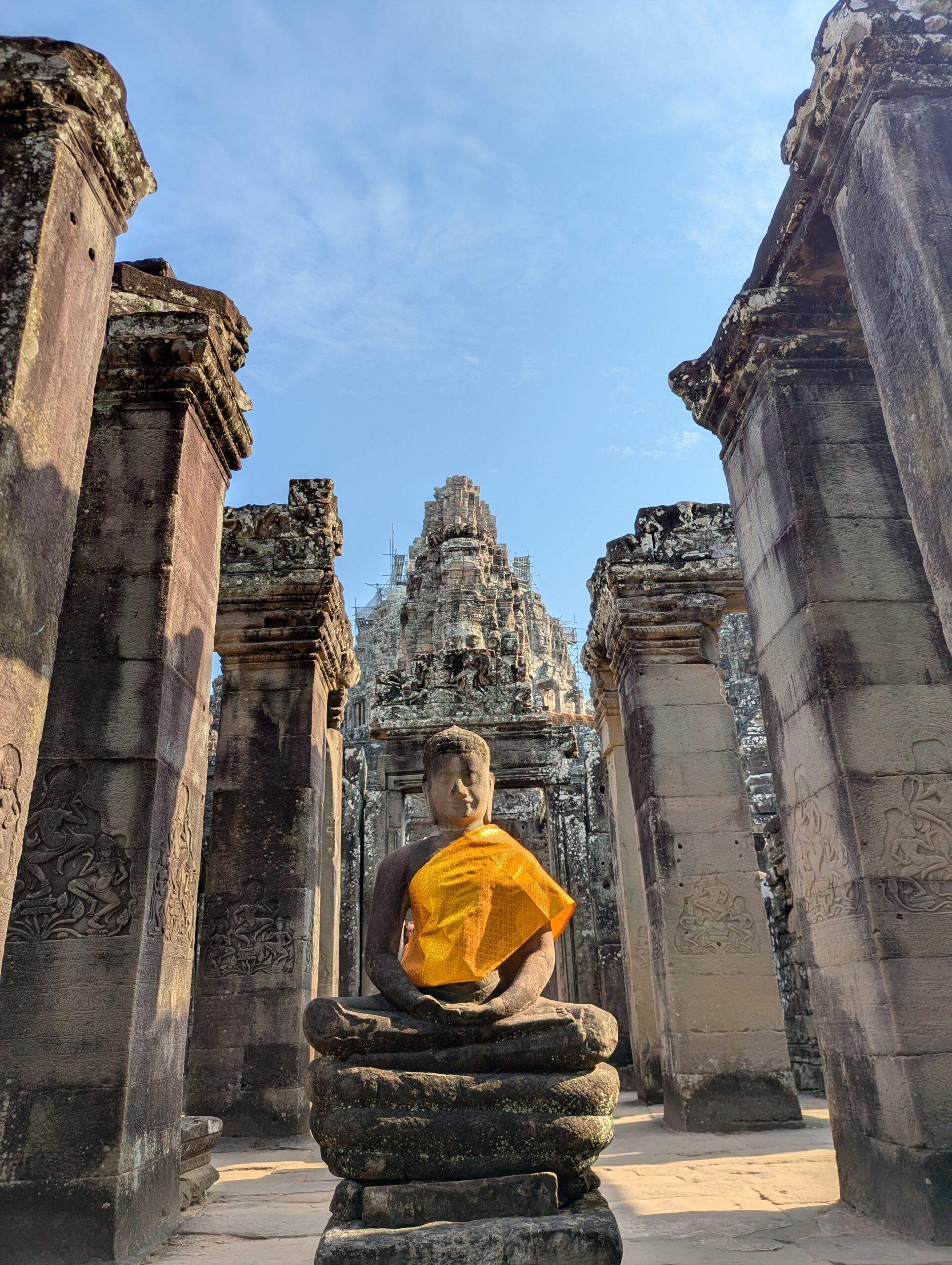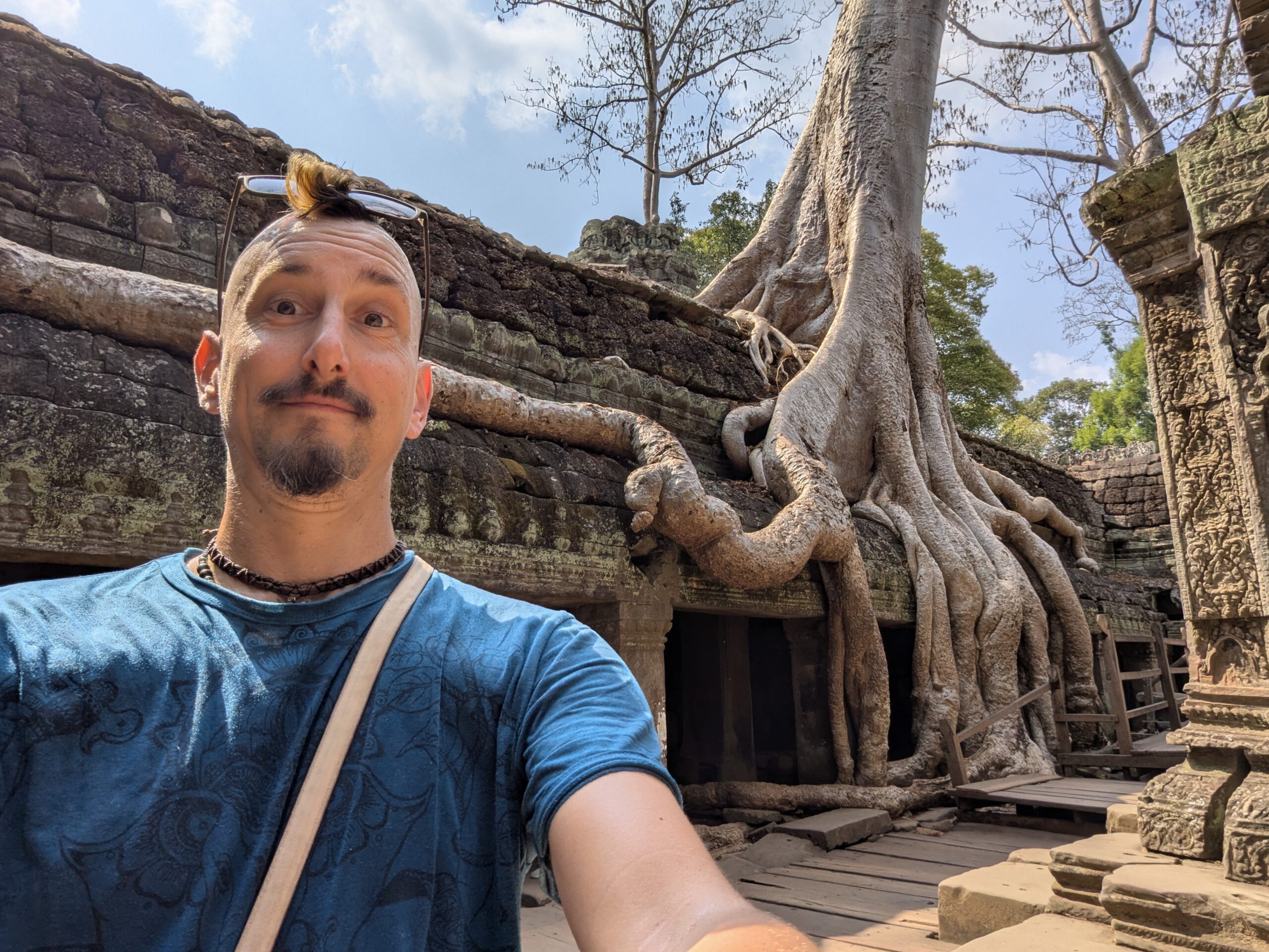 Me voici au Cambodge pour visiter ce site incroyable que je rêve de voir depuis fort longtemps! Et je ne suis pas déçu, c’est encore plus incroyable que je ne le pensais! Il y a des temples PARTOUT, certains en bon état et d’autres de pures ruines, certains recouverts d’arbres et d’autres abritant des singes, certains remplis de touristes et d’autres totalement oubliés des foules… C’est beeeeaaaauuuuuu! Mais il fait tellement chaaaaaaauuuuuuuuud!!!!! Je commence à vraiment souffrir de la chaleur, je passe mes journées à l’ombre, sur mon scooter ( il y a de l’air tant que je roule) et au cinema climatisé… 2 ou 3 heures de visite de temples par jour avant de trop en baver. Et la nuit c’est pas beaucoup mieux et en plus les moustiques s’y mettent… Donc c’est merveilleux comme endroit mais j’ai tellement hâte de retrouver la fraîcheur de l’Himalaya au Nepal!!!!