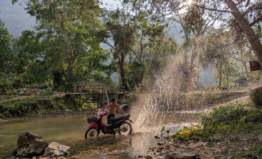 Un peu plus au Nord, à une heure de bateau, nous débarquons pour trois jours à Muang Ngoy, autre petit village calme et mignon avec ballades, grottes et la rivière (et des bons restos!!!).